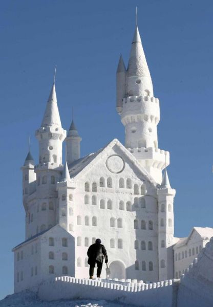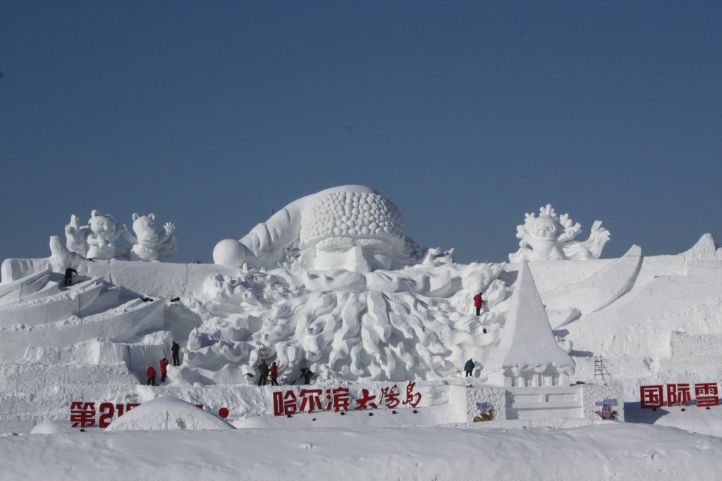 Ежегодно, начиная с 1985 года в Китайском городе Харбине с января по февраль проходит грандиозная выставка скульптур из снега и льда. На месяц город превращается в сказочное снежное королевство. Снежные и ледяные произведения мастеров со всего мира поражают воображение зрителей. Целые архитектурные комплексы из льда в виде пагод, соборов, дворцов особенно впечатляюще смотрятся ночью в разноцветных огнях.