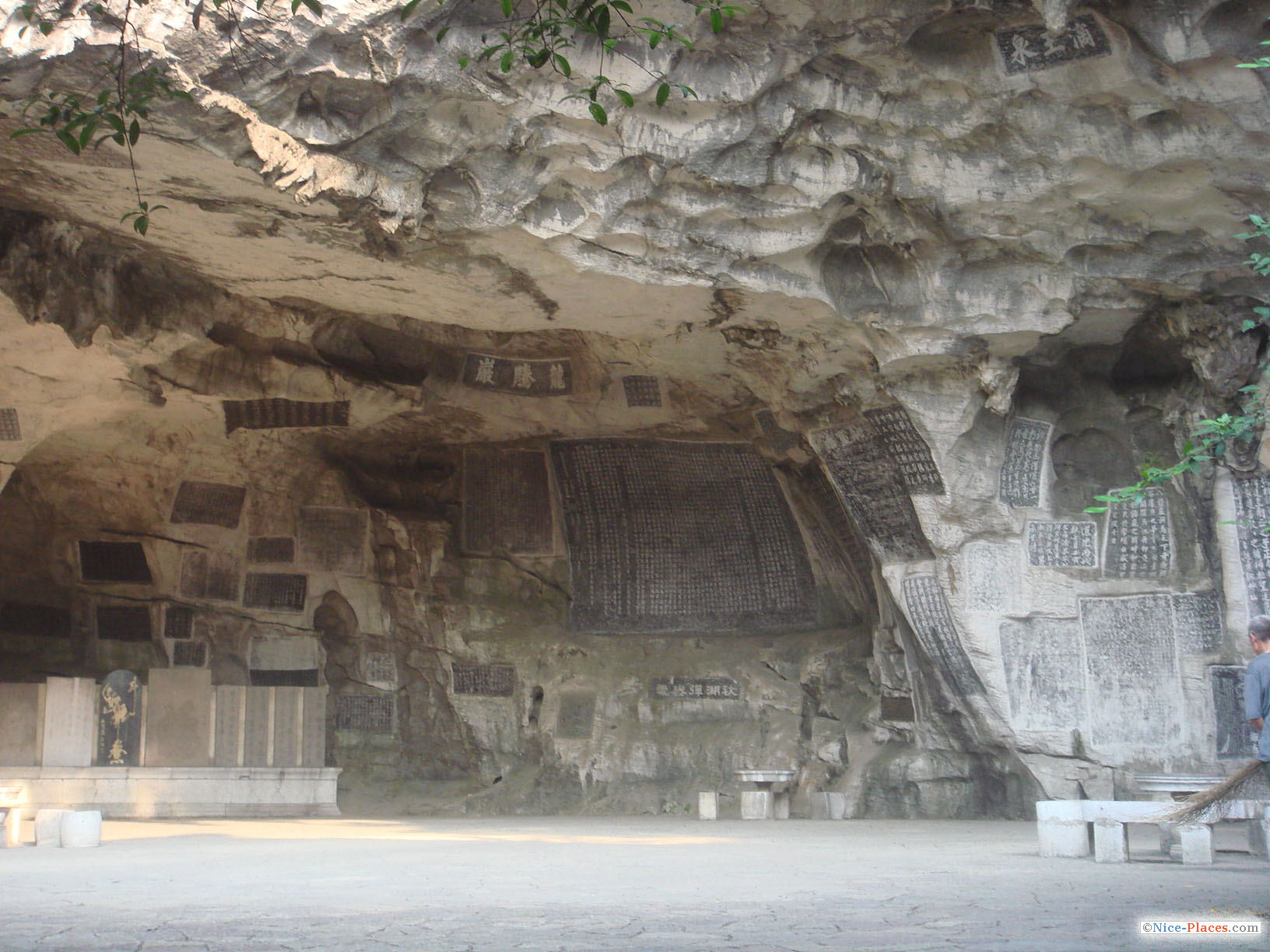 После ланча в хостеле идем в парк Цисин (Qi Xing gongyuan). Сначала идем к пещере, где на стенах выдолблены старинные письмена. Стены общей длиной в несколько десятков метров, а кое-где и потолки, исписаны иероглифами — от старинных до современных, кто-то старательно их выдолбил.