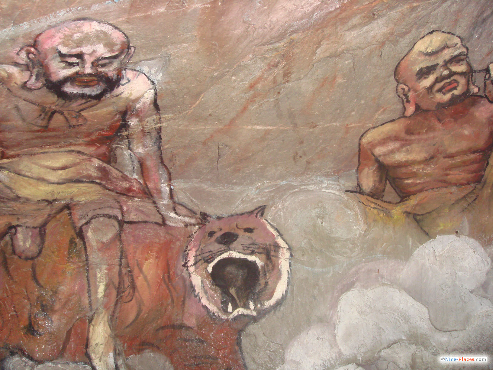 Полчаса пешком — и мы на месте. К нам сразу подошла гид и экскурсия стала интереснее. Мимо высохшего озера (гид говорит, что через месяц-другой его заполнят водой) идем к пещерам. Теперь я знаю как выглядят сталактиты, сталагмиты и корни деревьев. Пещеры неглубокие, но электрического света все равно не достаточно, чтобы рассмотреть рисунки на потолках и стенах.