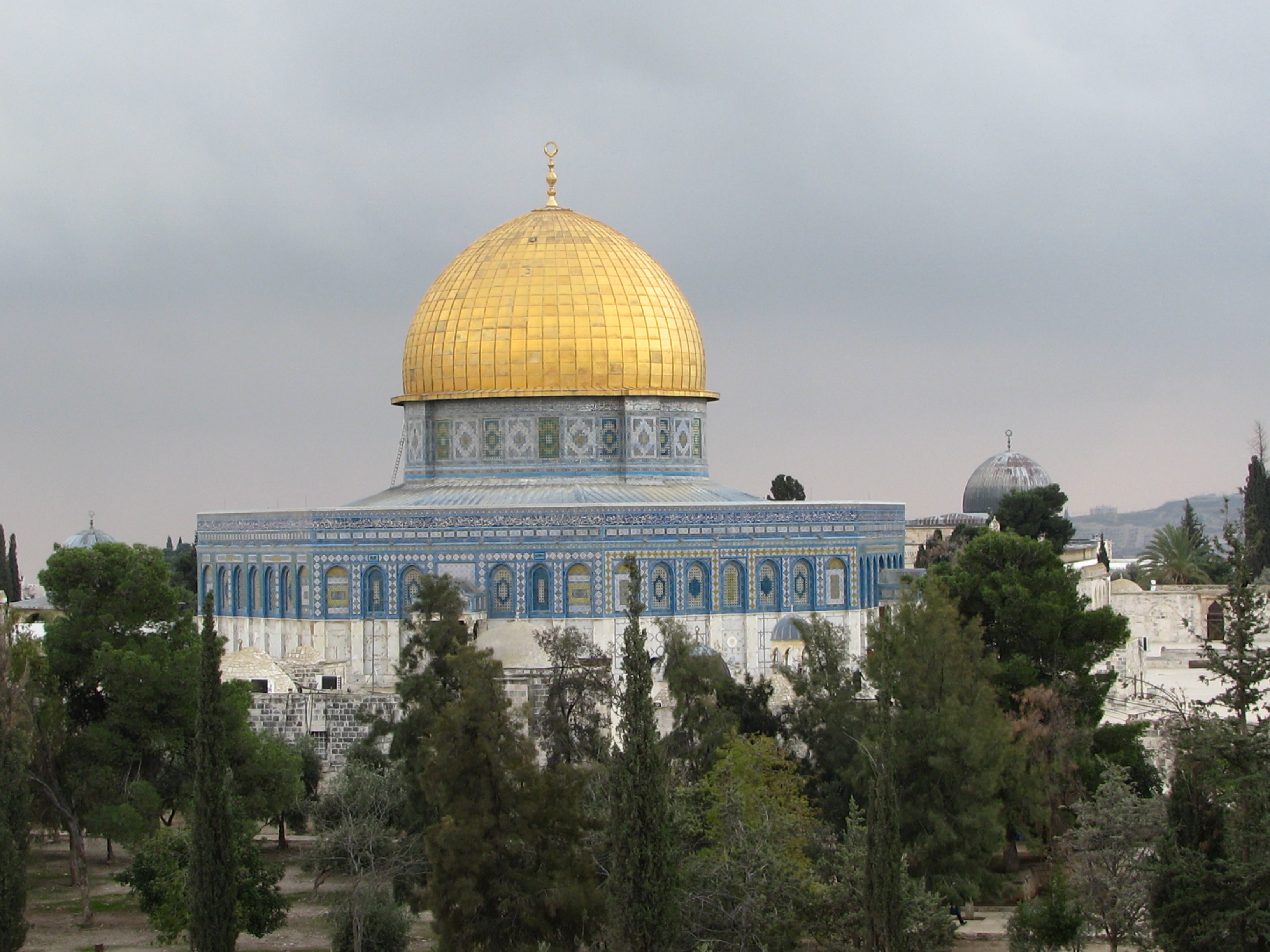 Золотистый огромный купол мечети Куббат ас-Сахра, расположенный на вершине горы, виден на много километров. Поэтому его часто путают с куполом мечети Омара, который обладает более скромными размерами.