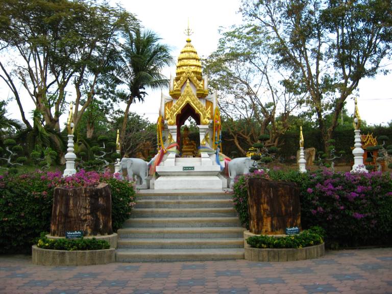 Еще одним памятником сакральной архитектуры самого известного тайского курорта является храм Ват Янсанварарам, построенный в честь короля Таиланда Пумиболю. Он расположен на высоком холме, благодаря чему храм можно увидеть издали. Но попасть в него не так легко, как это кажется на первый взгляд, для входа в храм необходимо преодолеть высокую лестницу из 299 ступенек. Лестница богато украшена изображением змей, напоминающих туристам о тайской философии и роли змей в местной религии. Он построен в соответствии с принципами фэн-шуй, а его интерьеры больше напоминают посетителям музей, чем храм. Внутри можно увидеть немало предметов старины, изображения Будды, сюда привозят и раритеты, найденные во время археологических раскопок. В храме представлена и уникальная коллекция, повествующая посетителям о различных этапах исторического развития Сиама (так раньше назывался Таиланд). Особый интерес вызывают миниатюрные модели этнических тайских домов, характерных для конкретных исторических периодов, а также модели традиционных лодок и кораблей. Храмовый холм со всех сторон окружен необычными павильонами, построенными в китайском стиле, рядом с ним находится озеро, воды которого используются паломниками для омовений, а вблизи храмового комплекса расположились монастырские угодья.
