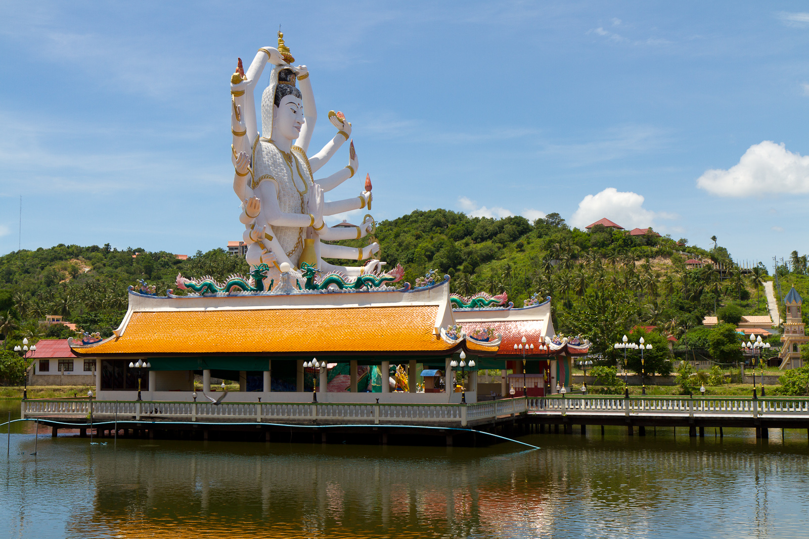 В северо-восточной части острова Самуи находится еще один храм — Плай Лаем, построенный совсем недавно, в 2004 году. Архитектурный ансамбль храмового комплекса, помимо самой пагоды, включает и другие постройки, вход на территорию храмового комплекса бесплатно. Во время прогулки по храмовому комплексу можно увидеть 14 скульптур, изображающих буддистские божества, самой необычной из которых является скульптура многорукого Будды, внутри храмового комплекса находится и поросший лотосом пруд. В южной части острова Самуи находится храмовый комплекс Лаем Сор, отражающийся золотым свечением в лучах восходящего солнца. А поднявшись к вершине расположенной неподалеку гору, можно увидеть еще один храмовый комплекс – Стопа Будды, местные жители бросают монетки в оставленный в камне след Будды, веря, что сбудется их самое сокровенное желание.