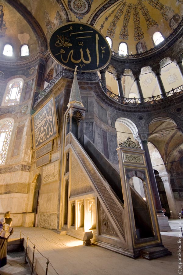 Недалеко от Ипподрома расположены три исторических памятника: обелиск Теодосия, бронзовая Змеиная колонна и колонна Константина. Они, конечно, производят впечатление, но незабываемыми останутся деревянные дома, которые окружают памятники вокруг. Время их постройки – XVIII век, сегодня они отреставрированы и превращены в небольшие отели. Каждый отель предложит свои кулинарные изыски турецкой кухни и духовную пищу (чтение в библиотеке).Любой путешественник должен посетить Дворец Топкапы. В XX веке комплекс зданий дворца был национализирован, а до этого это была официальная резиденция турецких султанов. Добра султаны за 400-летнию историю дворца нажили немало, и сегодня Дворец Топканы превратился в увлекательный музей. Кстати, посетив дворец, вы окажитесь в одном из главных военно-стратегических мест Европы в прошлом – возле пролива Босфор. Коллекция Топканы да и сама история дворца очень увлекательная. Здесь можно осмотреть богатые коллекции китайской керамики и серебра, познакомиться с коллекцией одежды султанского двора (она сохранилась очень хорошо, т.к. в Турции была традиция после смерти крупных вельмож опечатывать их костюмы в мешках). Большой интерес вызовет богатейшая коллекция восточных и европейских часов, которые когда-то размещались по всему дворцу. Когда будите осматривать часы, то представьте себе счастливых механиков-часовиков, которым единственным из мужчин был открыт доступ в гарем. Нет, нет… они занимались только настройкой часов :)
