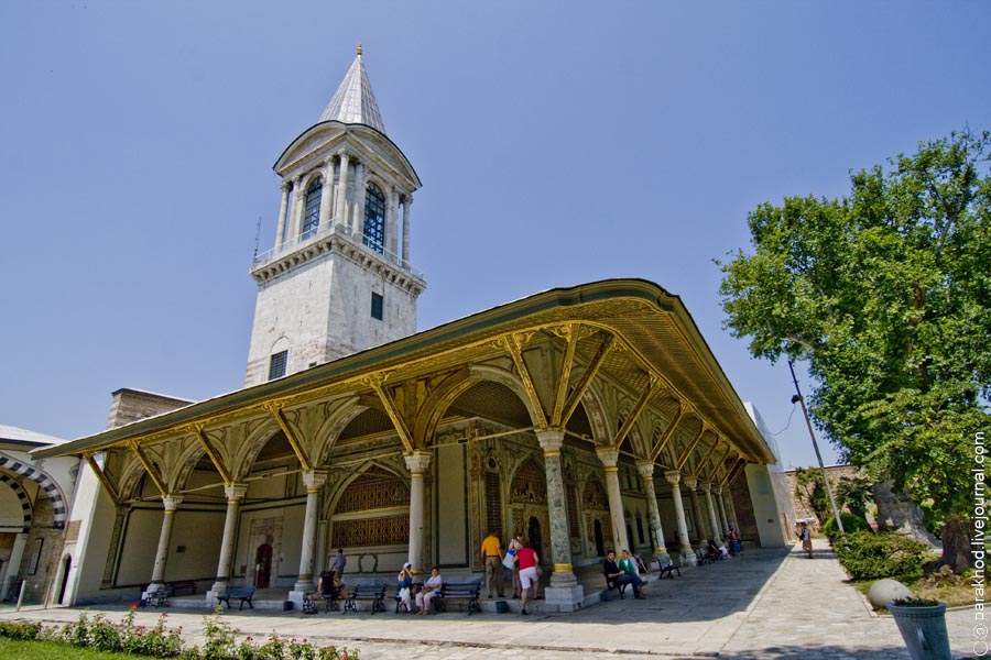 После тщательно осмотра Дворца Топканы мы обязательно советуем выйти из него и остановиться у Фонтана Ахмета III. Он оригинален и красив, и путешественник может пить живительную и прохладную воду. В старину у этого фонтана прохожие могли угоститься не только водой со льдом, но и щербетом.