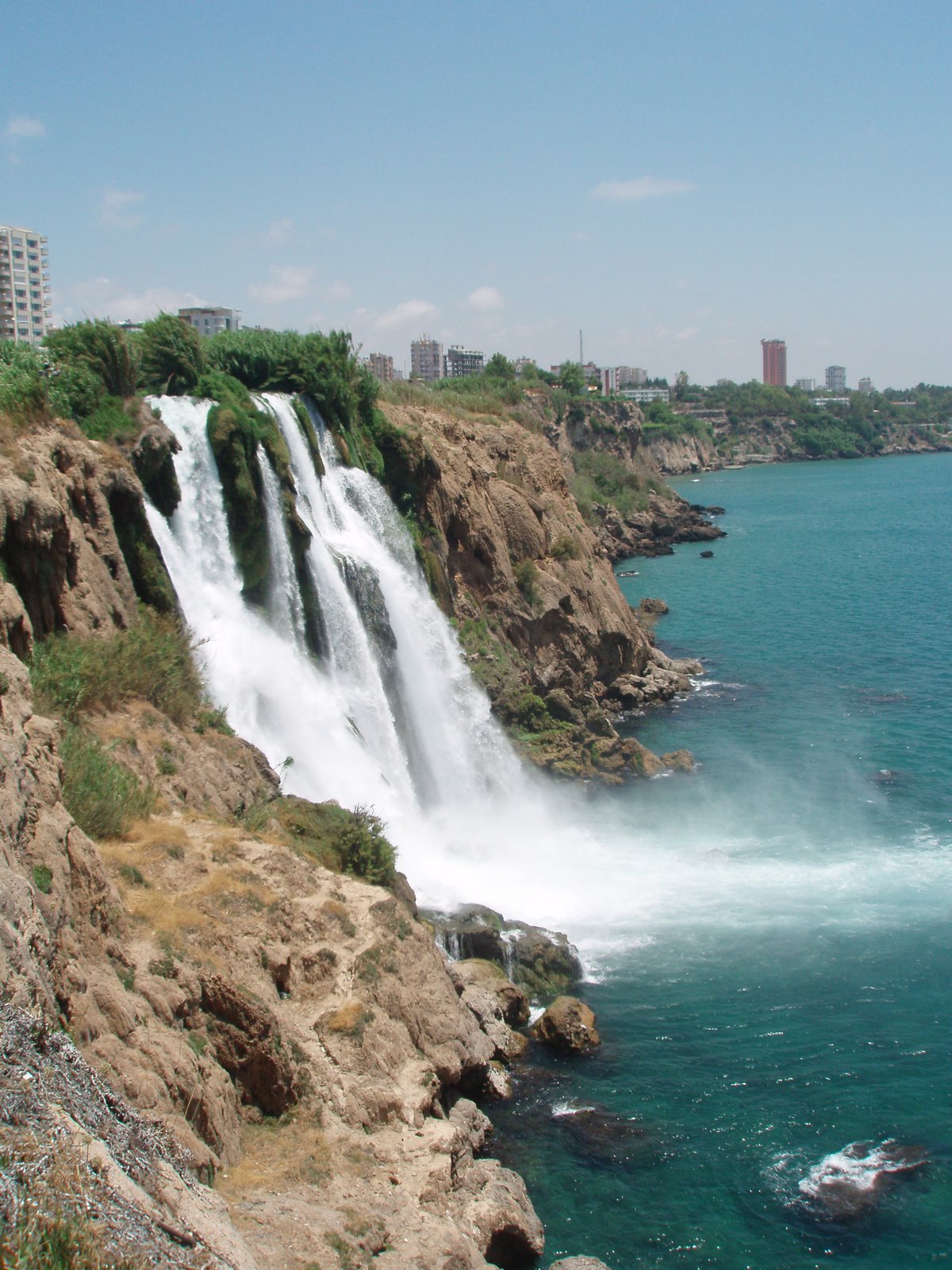 Обилие широких улиц и бульваров позволяет KARYA бусику быстро переместиться на другой конец города. Побережье Антальи представляет собой высокий скалистый берег, круто обрывающийся в море. Так что протекающим через город небольшим речушкам ничего не остается как свергаться с небес в прорву.