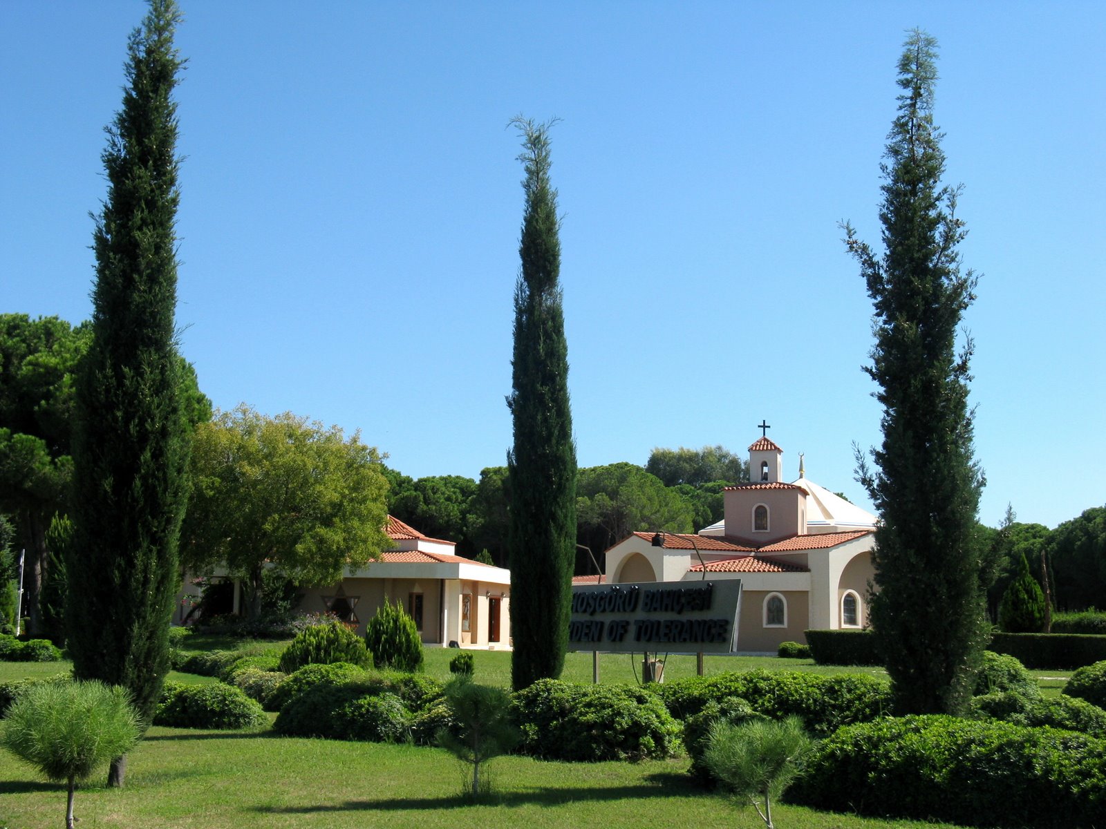 Возле дороги на окраине небольшого лесного массива находится сад терпимости. Вплотную друг к другу стоят мечеть, синагога и православная церковь. Удивительное торжество мира и понимания.