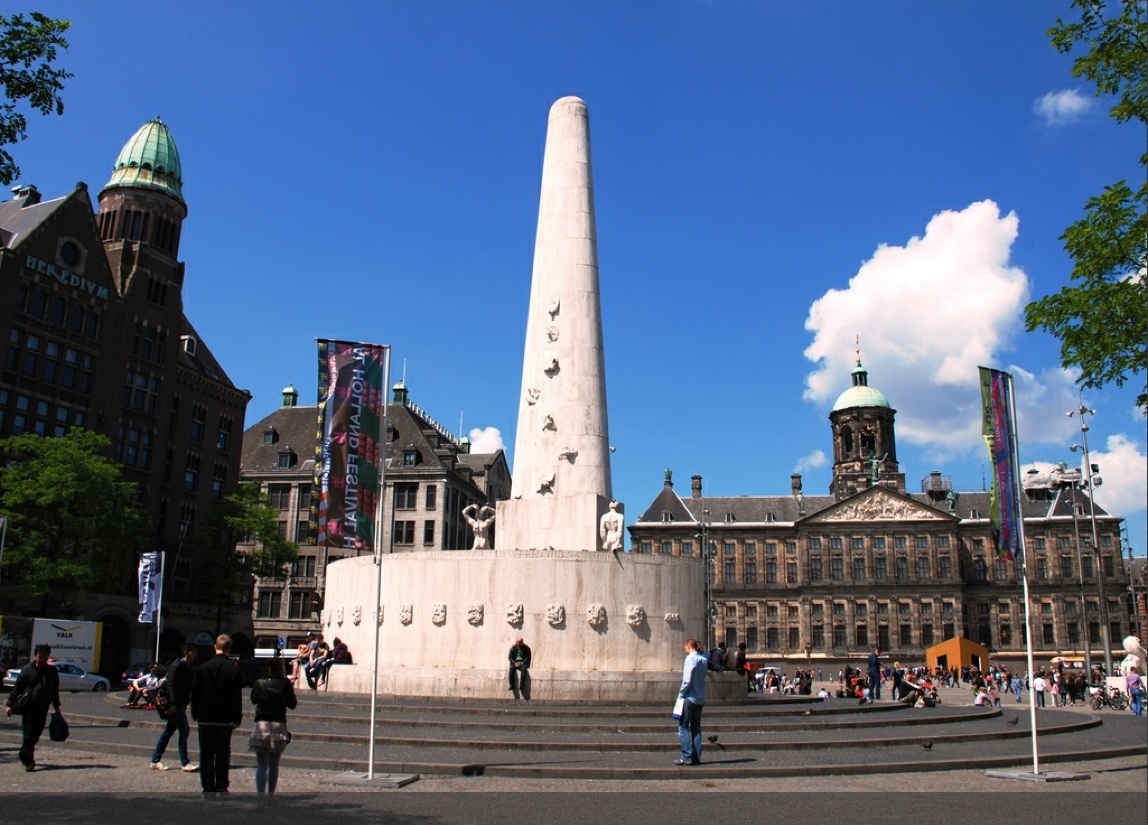 В центре площади сегодня возвышается Национальный монумент, посвященный героям борьбы с нацизмом. А вокруг нее достаточно гармонично уживаются здания церкви Ньиве Керк, Королевский дворец и выставка-музей мадам Тюссо, которые выполнены в совершенно разных архитектурных стилях.