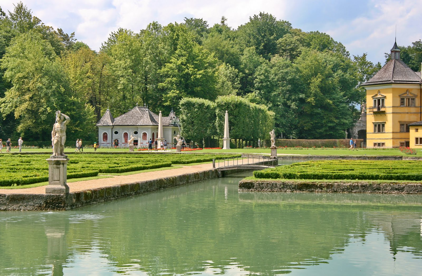 Дворец Хельбрунн был построен в начале XVII столетия по проекту архитектора С.Солари для архиепископа Маркуса Зиттикуса в качестве загородной резиденции, он расположен в пригороде Зальцбурга, но обойти эту жемчужину австрийской архитектуры просто невозможно. Небольшой двухэтажный симметричный дворец по внешнему виду напоминает классическую итальянскую виллу, окруженную оригинальным дворцовым парком в стиле маньеризма. Повсюду привлекают внимание таинственные гроты и загадочные старые пруды, фигуры ужасающих каменных чудовищ и фонтаны – «шутихи». В середине XVIII столетия на территории загородного дворца был создан уникальный механический театр, в котором приводится движение 256 оригинальных миниатюрных фигурок, имитирующих городскую жизнь. Привлекает и Музыкальный салон, и небольшой Охотничий домик, помещение которого занимает экспозиция Этнографического музея, и почти исчезнувший Олений парк, площадь которого отведена под Зальцбургский зоопарк.