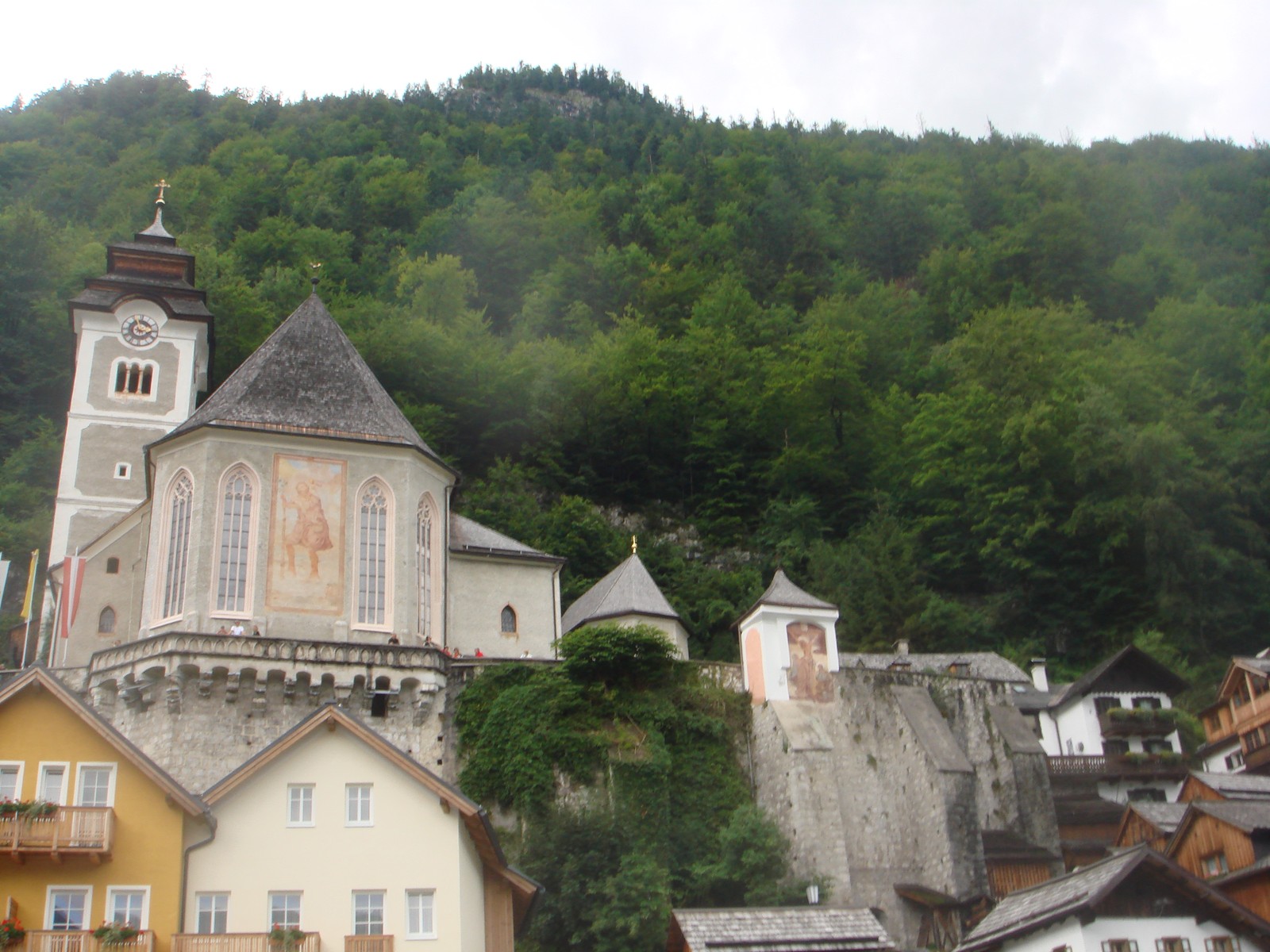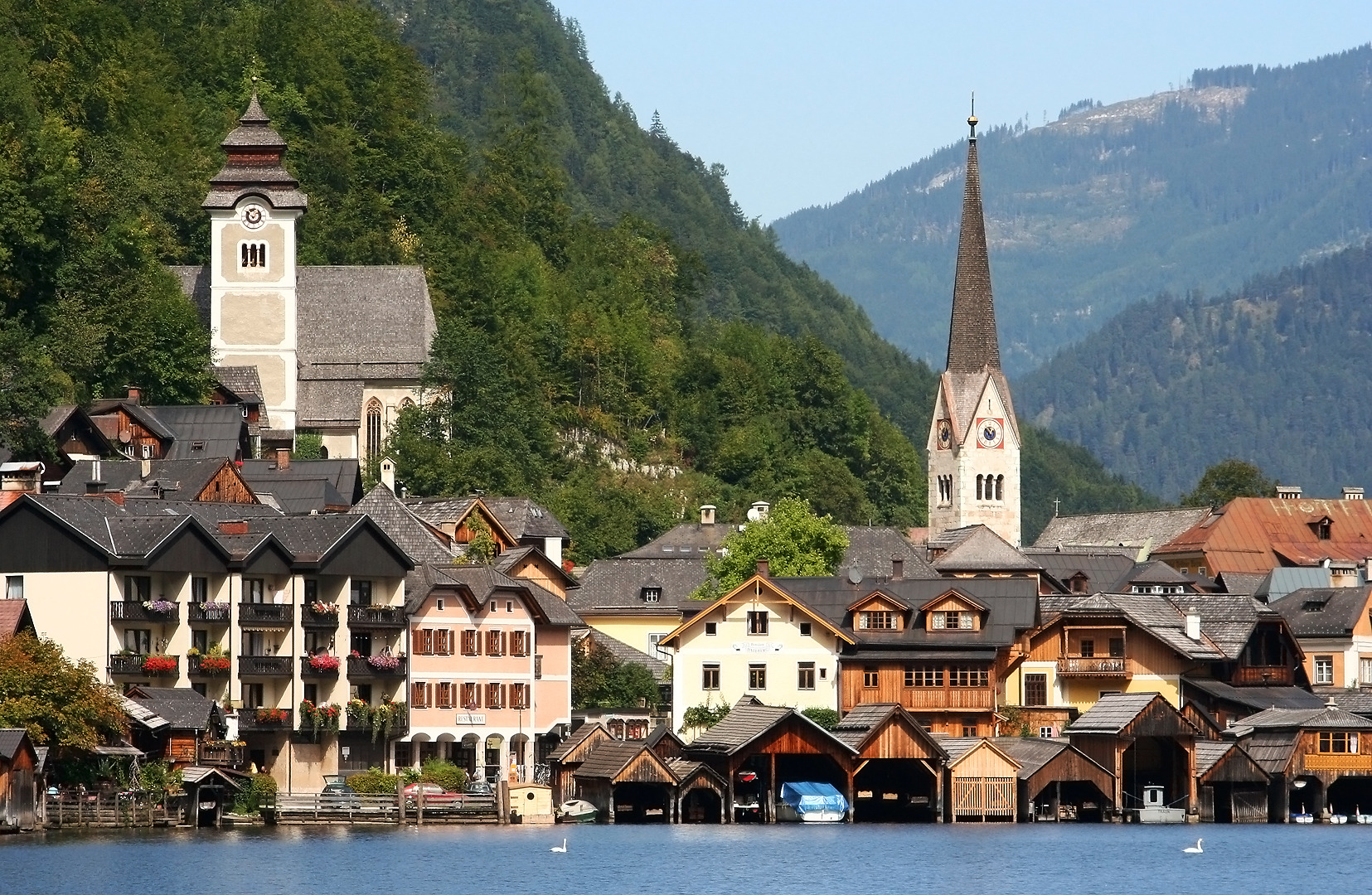 Сам город, фактически, имеет в своем составе только две улицы. Да и то, проехать на машине можно только по одной из них. Центральная рыночная площадь Гальштата носит название Marktplatz. Известная по многочисленным фотографиям лютеранская евангелическая церковь Гальштата была построена в середине 19 века, и находится на самом берегу озера. Если вы совершите прогулку по узким и крутым городским улочкам, то непременно наткнетесь на старинную церквушку, возведенную в древнем романском стиле. С этого места открывается поистине величественный вид на окружающую природу и великолепные окрестности.