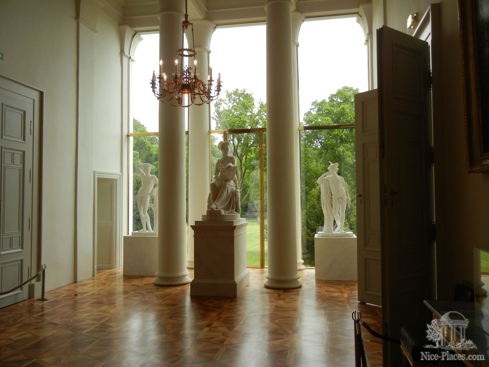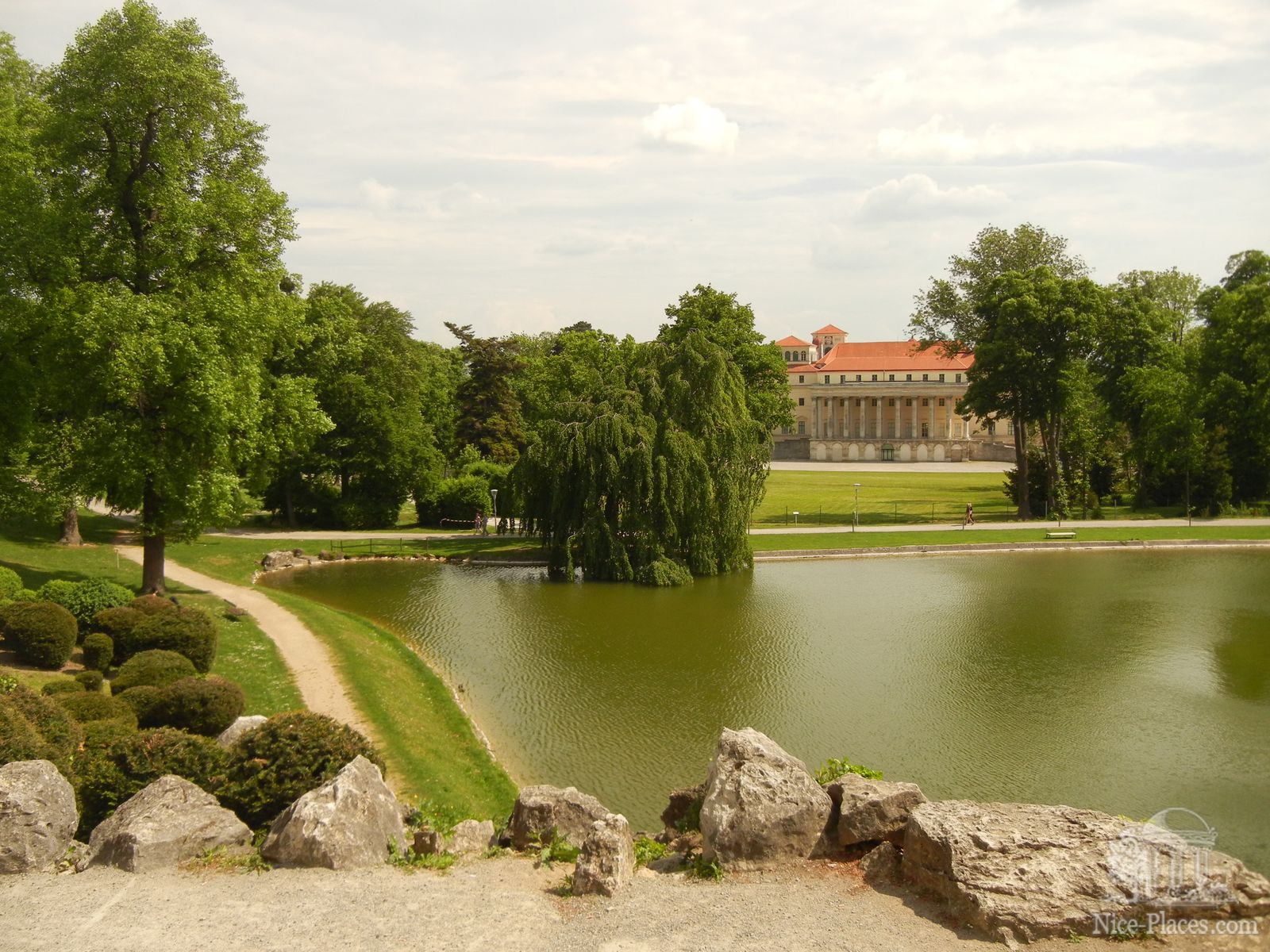 Для торжественных приемов и трапез в замке существует зал Ампир, а Садовый зал специально сделан для приема особо почетных гостей. Вокруг дворца разбиты ухоженные садовые лужайки с красивыми клумбами. И с двух сторон вокруг замка в английском парке высажены тенистые деревья. Здесь можно полюбоваться живописными гротами, оранжереями и храмом Леопольдины, названным в честь супруги князя Эстерхази.