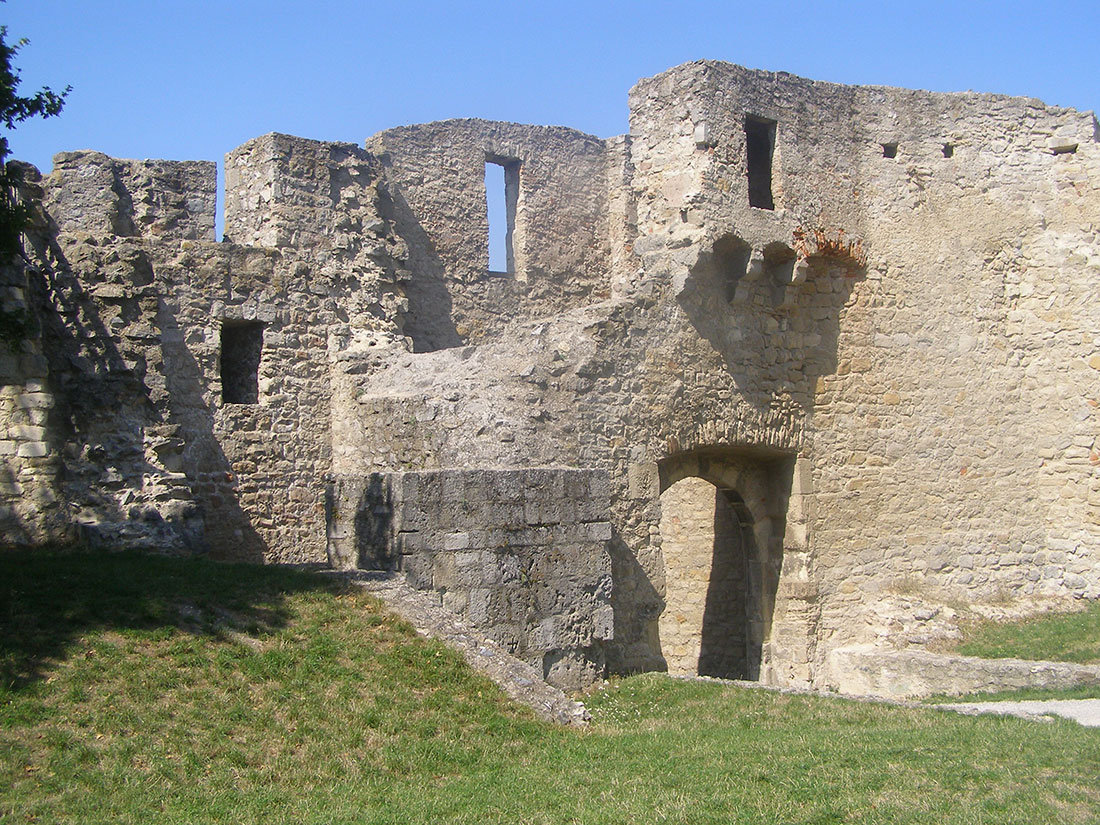 С южной стороны к старому городу примыкает холм Шлоссберг высотой 290 метров, на котором находятся руины одноименного замка. Строительство местного града было начато в XI веке. Он отлично выполнял свою функцию, защищая австрийскую границу, но во время второго нашествия турок в 1683 году был наполовину разрушен и с тех пор не восстанавливался. Сейчас замковый комплекс открыт для посещения. К нему можно подняться по тропинке, вдоль которой в самых живописных местах, откуда открывается великолепный вид на раскинувшийся внизу город, установлены лавочки для отдыха. В летнее время на территории замка устраивают различные концерты.