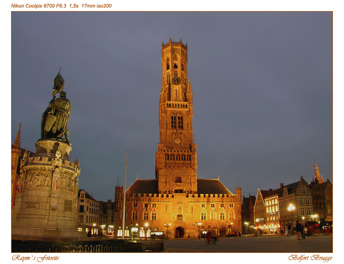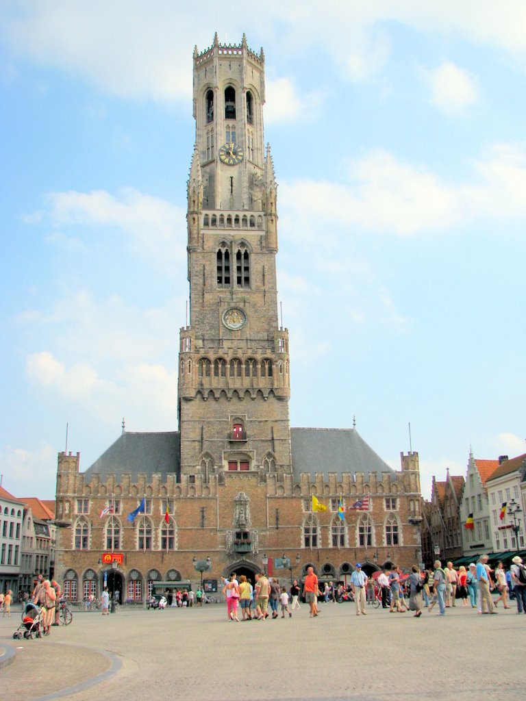 Одной из главных достопримечательностей Брюгге считается рыночная площадь Гроте Маркт с башней Белфорт. Высота башни составляет 83 метра. Нижняя часть башни Белфорт была воздвигнута в XIII веке, а верхняя часть в форме восьмигранника была отстроена уже в XV веке. Башня имеет 50 колоколов курантов, расположенных на уровне верхней смотровой площадки. Эти колокола каждый час звонят свою неповторимую мелодию.