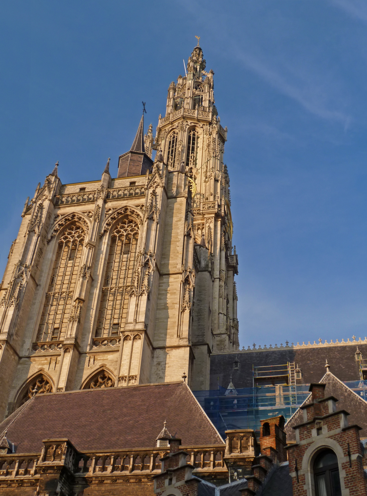 Прогуливаясь по Антверпену, 123-метровую величественную Северную башню колокольни собора, украшенную старинными золочеными часами, можно увидеть издалека, жители города утверждают, что своим шпилем она упирается в облака. Южная башня собора чуть ниже северной башни, хотя, по плану архитекторов, собор должен быть симметричным, а посередине возвышается фонарная башня. В интерьере собора сохранилась мраморная статуя Богоматери, изготовленная в XIV столетии, готические фрески, расписные купола, старинный алтарь, орган, хоры и капеллы, саркофаги, в которых покоит прах аристократии Антверпена. Украшением интерьера собора являются и шедевры Питера Пауля Рубенса на библейскую тематику – «Снятие с креста», «Воздвижение креста», «Вознесение Марии» и «Воскресение Христа».