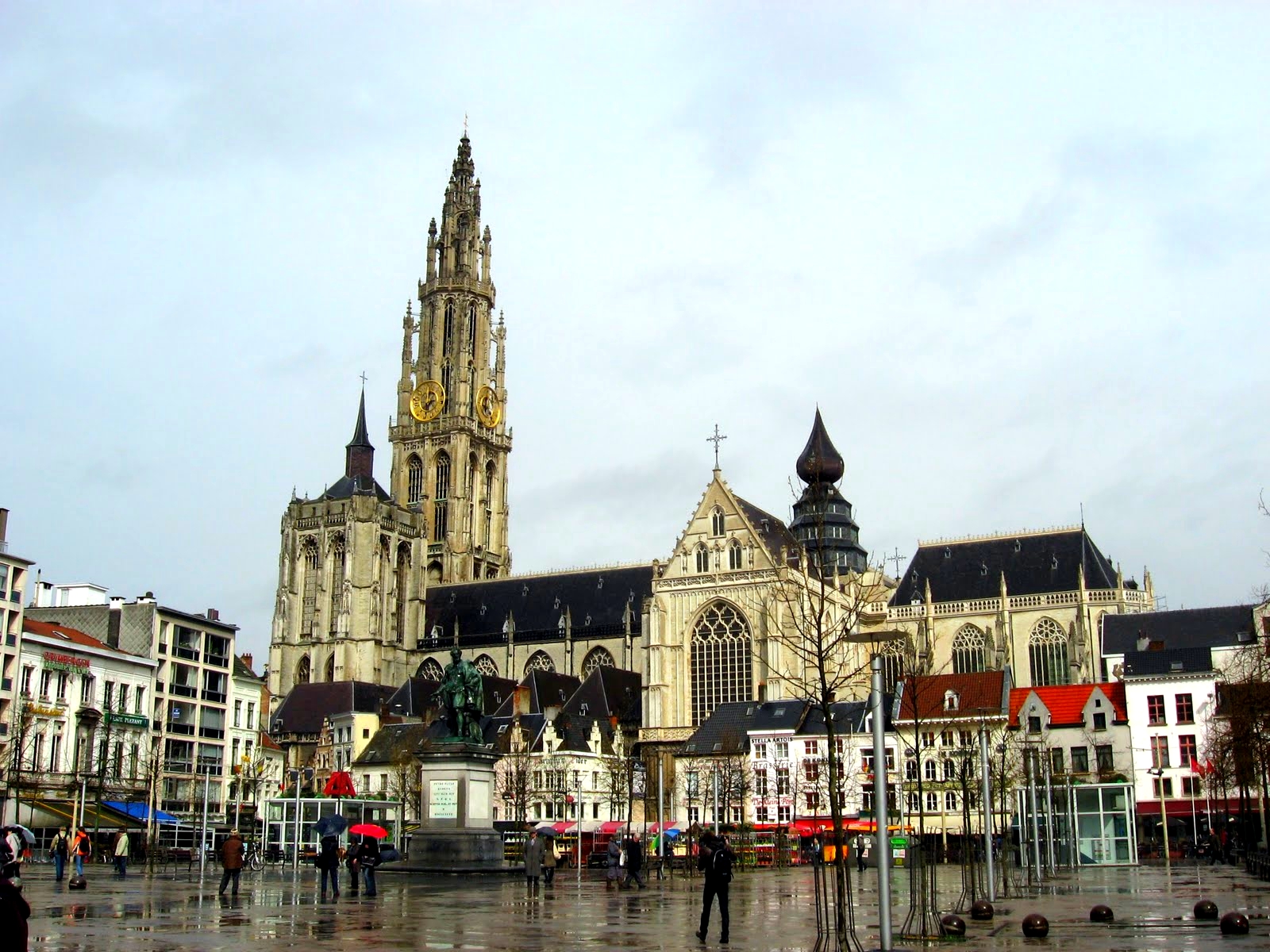 Быстро заметили возвышающуюся над городом башню. Где бы вы не находились в Антверпене, вы ее увидите. Башня – средневековая, 123-метровая и принадлежит собору Антверпенской Богоматери – покровительнице города. Храм ХIV-ХVI веков потрясающе красив – и фасад, и алтарь, и четыре полотна самого Питера Рубенса, которые, увы, нельзя фотографировать.