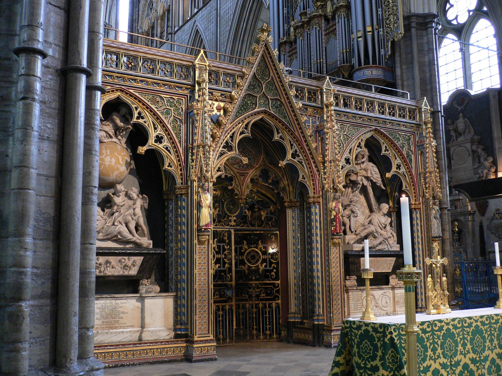 От первозданного храма сохранилась лишь старая часовня и переходы под дормиторием, возведены они были англосаксонским королем Эдуардом Исповедником, чья племянница, принцесса Гита, вышла замуж за князя киевского Владимира Мономаха, и стала матерью Юрия Долгорукого. Есть еще одно место в аббатстве не тронутое перестройками – это сокровищница. Долгое время она считалась самой тайной и труднодоступной частью аббатства. Но в конце 19 века реставраторы нашли потайную дверь в стене. На двери были найдены клочки белой кожи, экспертиза показала, что эта кожа человеческая.
