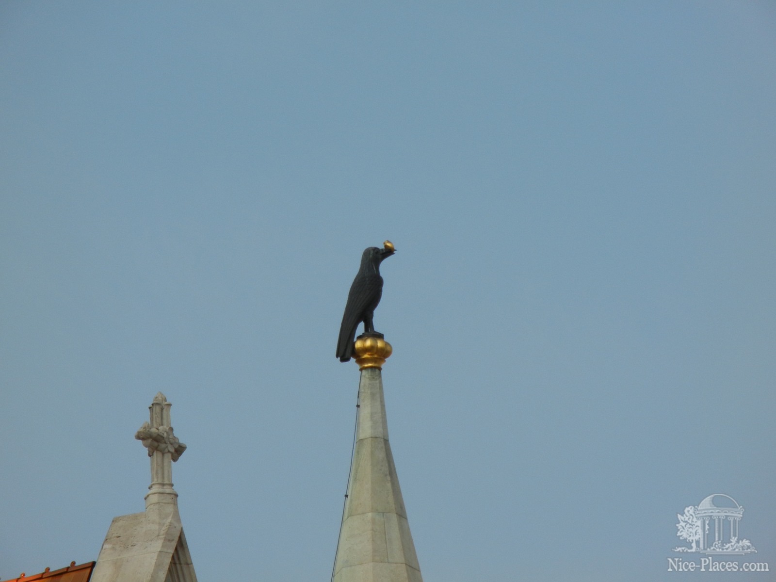 На южной колокольне можно заметить герб с изображением ворона с кольцом в клюве, также ворон сидит и на шпиле Церкви Св. Матяша. Эта птица — символ венгерского короля Матяша Корвина, в честь которого назван Собор. «Корвинус» с латыни переводится как «ворон». История появления этого загадочного символа наполнена легендами. Одна из них рассказывает такую историю.