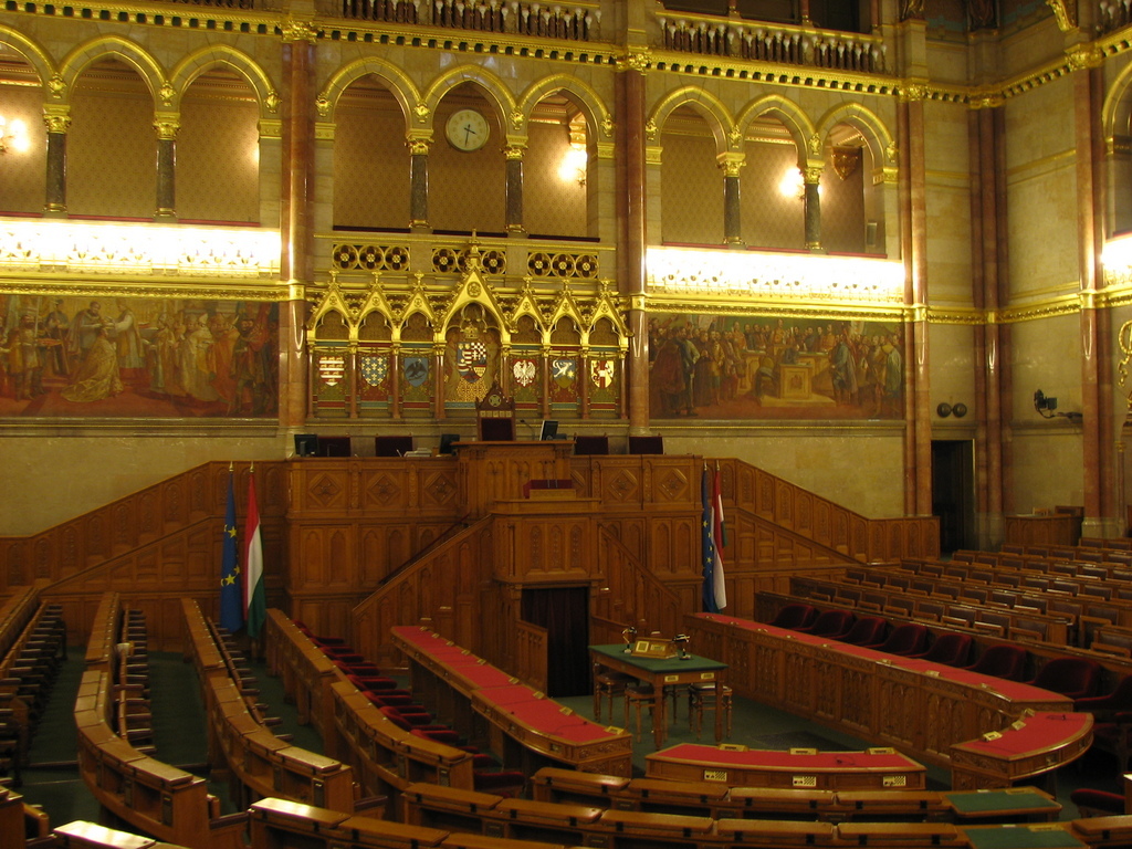 Внутри здания, прямо под мощным куполом, расположен просторный Главный зал, в котором насчитывается шестнадцать углов, а по его бокам – два других важных помещения, в каждом из которых ранее заседала одна из палат Парламента. Так, Верхняя палата, упраздненная в 1945 году, заседала в Северном зале, а Нижняя палата – в Южном зале, после того, как венгерский парламент стал однопалатным, ее переименовали в Национальное собрание. Подходя к зданию Парламента с восточной стороны и рассматривая его фасад, можно увидеть величественную лестницу, которую по бокам украшают два бронзовых льва, она ведет к главному входу.
