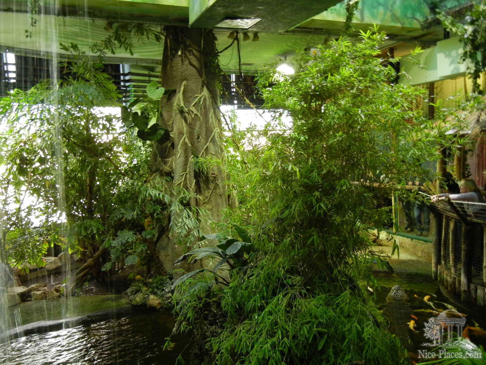 О Тропикариуме мы уже писали отдельную статью, можете почитать здесь, но поделюсь личными впечатлениями от увиденного. В целом Тропикариум оказался не такой большой, как я его себе представляла, его можно обойти максимум за час с подробным рассматриванием обитателей. Наиболее интересными являются искусственные тропические джунгли, где свободно летает несколько тропических птиц, живут два аллигатора и черепахи, а в озере плавает огромное количество китайских оранжевых карпов. Примерно раз в пол часа в «джунглях» гремит гром и льется дождь (посетителей, к счастью, он не затрагивает :) В стеклянном вольере живут мини-объезьянки и растут большие тропические пальмы и лианы.