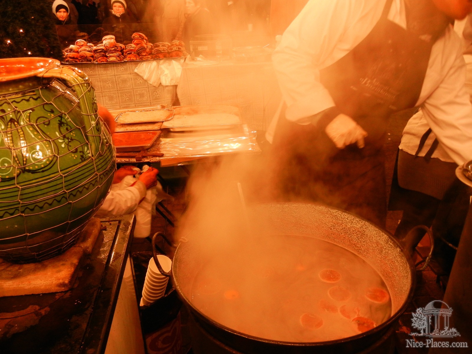 Из напитков преобладает горячее вино разных сортов, для детей есть разные фруктовые чаи и безалкогольные пунши.