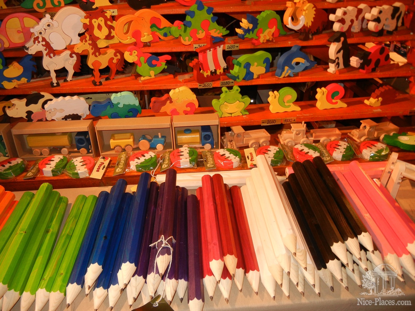Отдельно стоит рассказать о сувенирах. Здесь они тоже своеобразные. Очень много изделий из дерева, причем не топорно, а качественно и оригинально сделанные. Например разделочная доска с ножнами для безопасного хранения ножа. Всевозможные деревянные игрушки, в том числе полу-механические и развивающие.