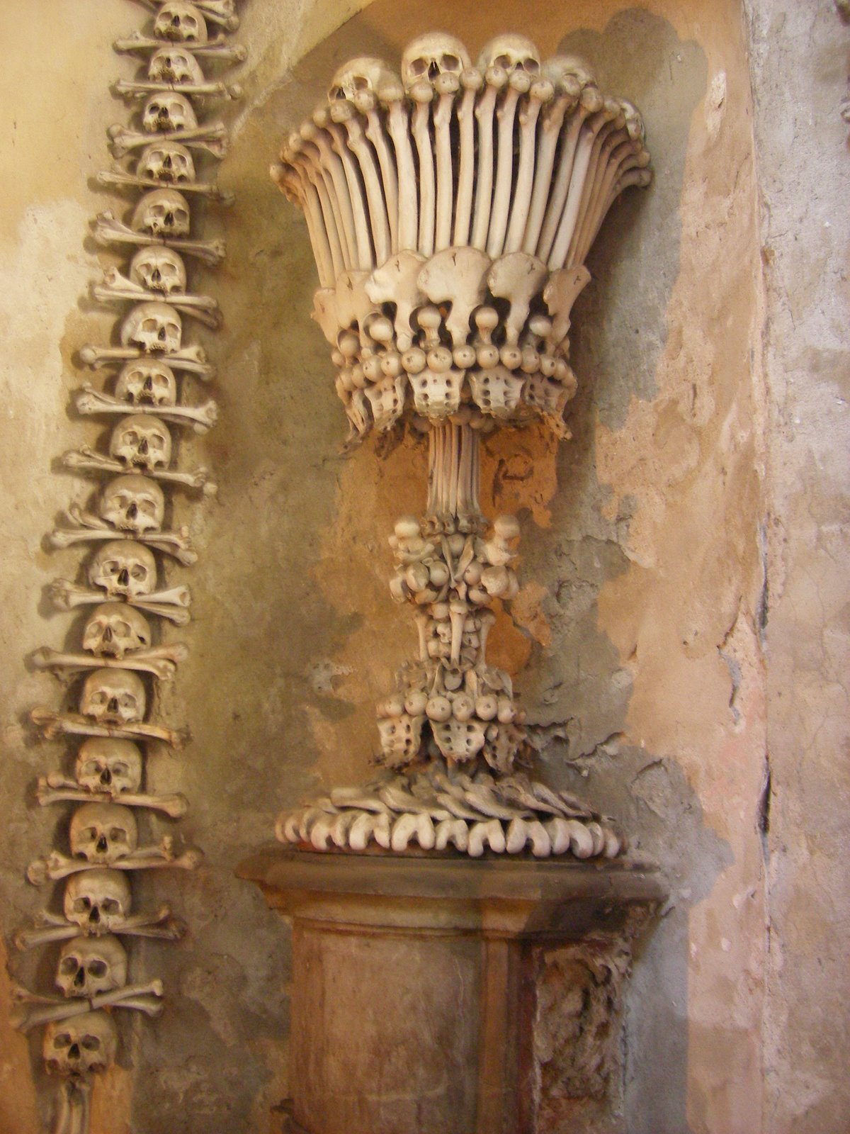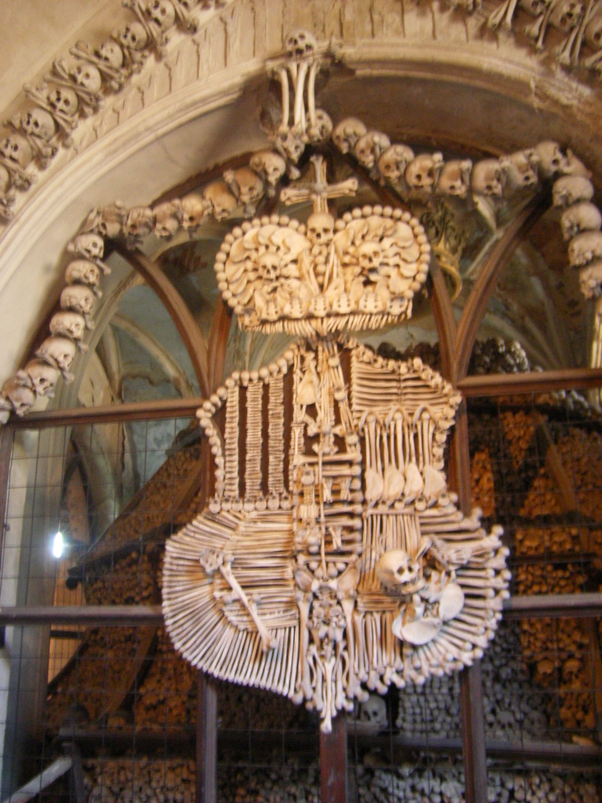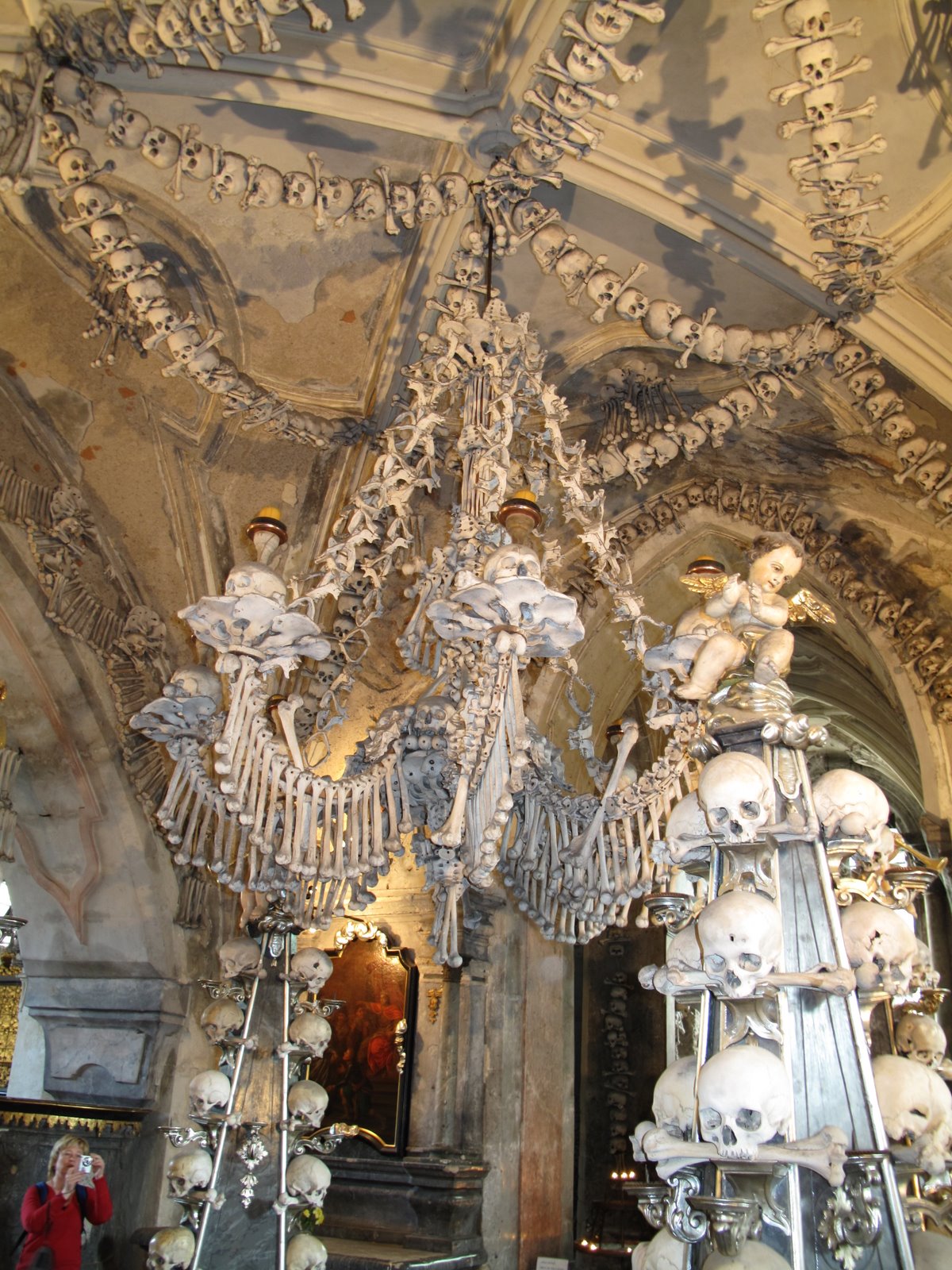 Этот чешский городок считается вторым по красоте после Праги. Первое что мы посещаем здесь – часовня с интригующим названием Костница. Спускаясь в ее подвал будто бы окунаешься в загробный мир, так пугающий своей тишиной и величием. Всюду сооружения … из человеческих костей: люстры, гирлянды, чаши, пирамиды. Искусство и смерть здесь переплелись воедино…