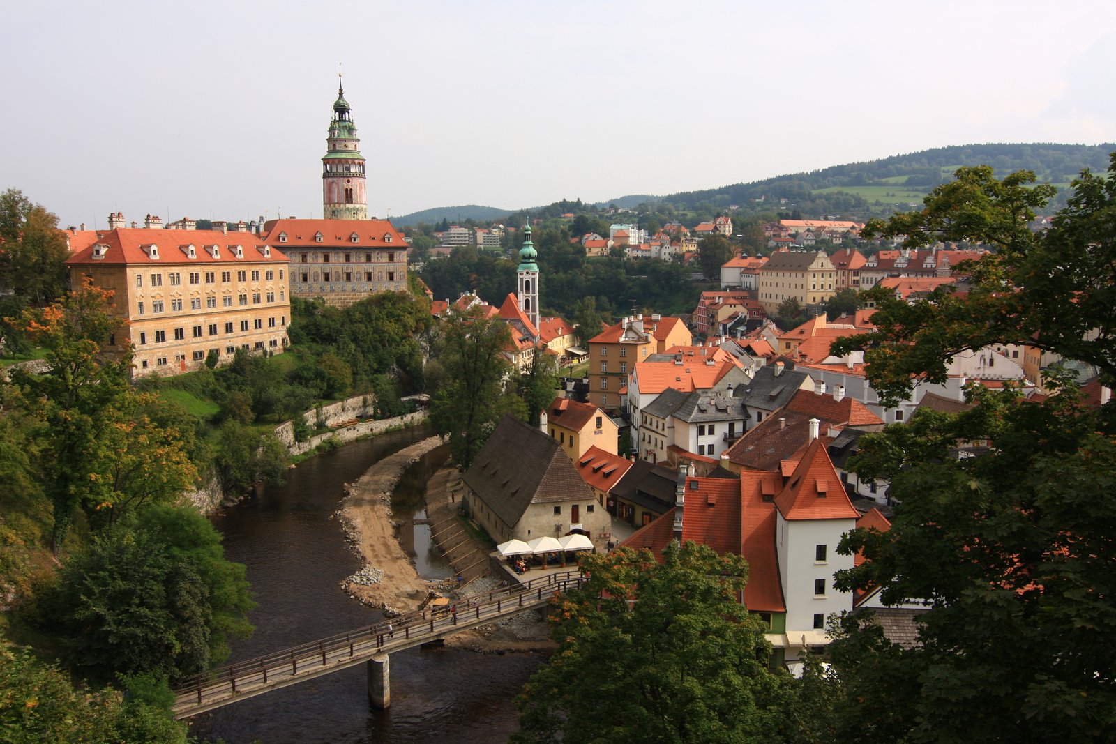 В 180 км от Праги, рядом с австрийской границей, расположен второй наиболее полно сохранившимся исторический комплекс в Чехии после Пражского града – Чешский Крумлов. Этот мировой памятник, находящийся под охраной ЮНЕСКО, был построен в середине XIII века на высоком скалистом мысе над рекой Влтавой представителями известного чешского дворянского рода Витковцов и обустроен в дальнейшем древним знатным родом Рожмберков. Владельцы замка в разные времена менялись – но неизменно были знатными и богатыми, поэтому Чешскому Крумлову есть что показать туристам – один из хозяев придал ему веселый барочный стиль, разбил сады и парки, другой украсил помещения картинами Ледерера, построил летний домик Белларие, зимний манеж, деревянный музыкальный павильон...Посетителей этого замкового комплекса всегда поражает технический памятник — трехъярусный мост, соединяющий замок с окружающим его парком, восхищают извилистые старинные улочки и средневековые дома, здание ратуши, театр иезуитов, костел святого Вита.