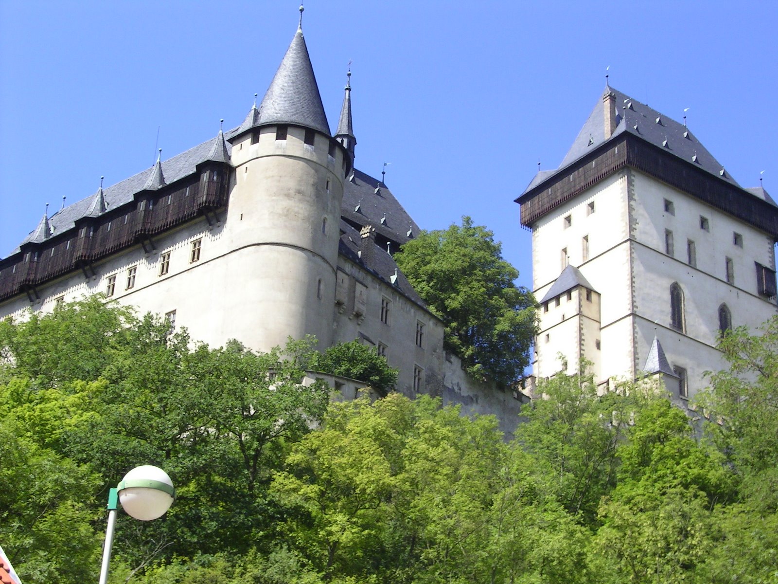 Был основан в 1348 году чешским королем и императором Карлом IV. Комплекс находится в 45 км от Праги, имеет три уровня: самый нижний – светский, там жил сам император, его жена и свита. На втором расположился костел Девы Марии и личная часовня Карла IV, посвященная его покровительнице святой Екатерины. А над всем этим возвышается уходящая в небо башня, построенная над часовней Святого Креста. Все святые помещения отделаны очень богато – в том числе золотом и полудрагоценными камнями. Карлштейн был одновременно и резиденцией императора, где собиралась вся европейская политическая элита того времени, и местом для хранения коронных драгоценностей и святынь, например известного копья сотника Лонгина и частицы Святого Креста – все это реликвии, напрямую связанные с Иисусом Христом. Крепость много раз перестраивалась, но ценные фрески и картины работы Мастера Теодорика (127 образов ангелов, пророков и святителей) сохранились в первоначальном виде.