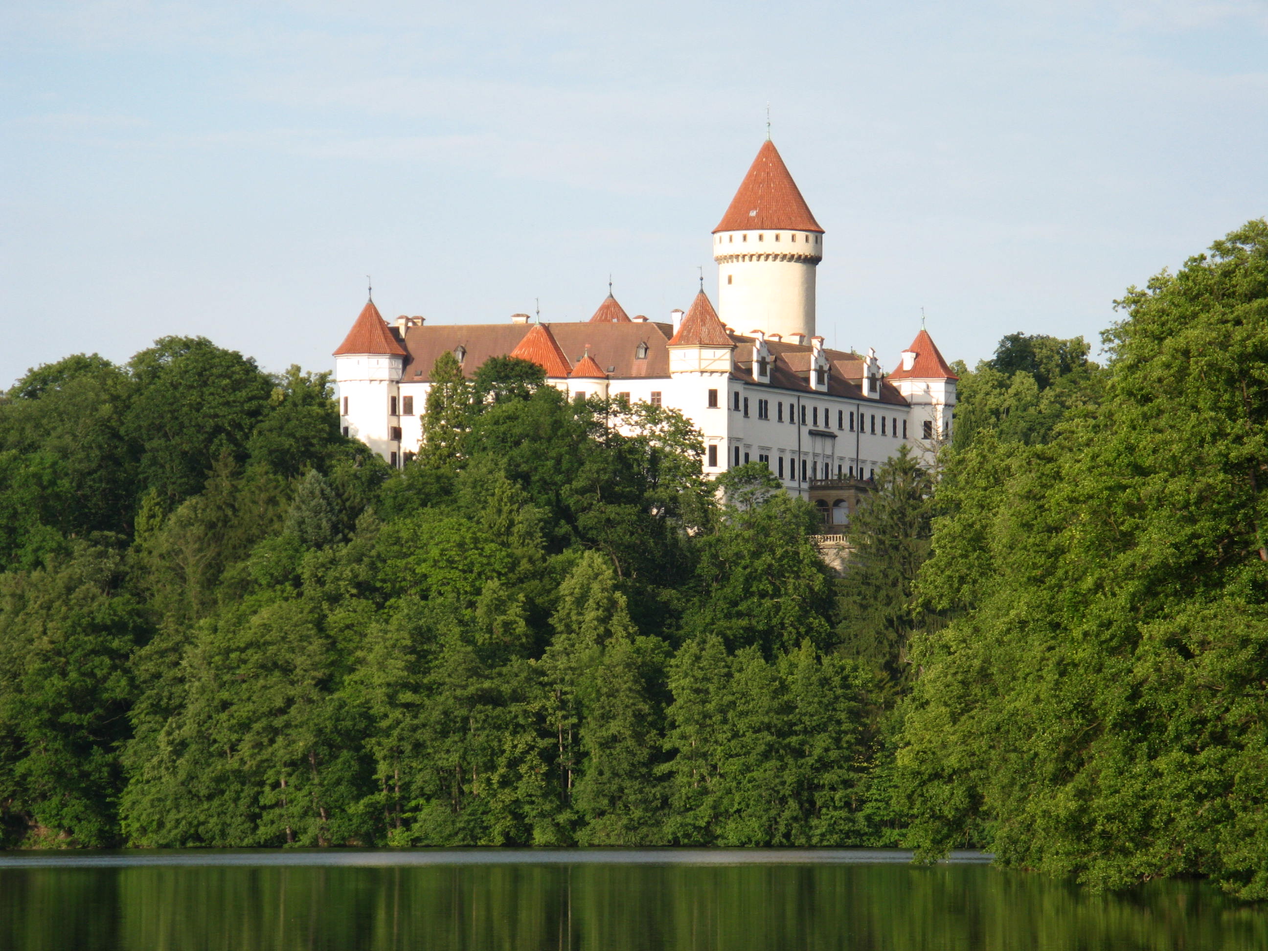 Еще одна известная чешская крепость, находящаяся в 44 километрах от Праги, Конопиште, славится небывалым собранием старинного оружия и охотничьих трофеев, старинной библиотекой. Богатые интерьеры замка украшены великолепными коллекциями фарфора, стекла, гобеленов. Конопиште менялся вместе со своими владельцами: вначале это был готический замок типа французского костела, затем его перестроили в стиле ренессанс, потом основным стилем стал барокко, и, наконец, романтизм – эта реконструкция была сделана известным архитектором Франтишеком Фердинандом д'Эстэ. Замок окружен парком в английском стиле и Розовыми садами. На территории можно осмотреть старинную часовню, картинную галерею, музей святого Георгия.