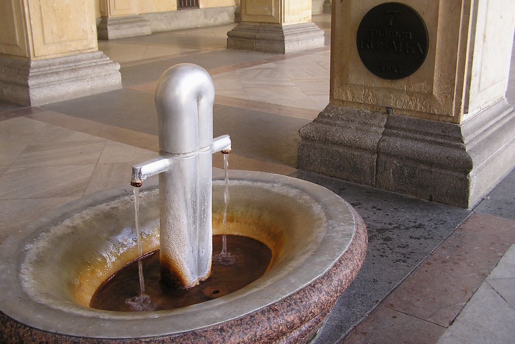 Сам курорт является крупнейшим на всей территории страны. В его окрестностях разведано более 60 источников с целебной водой. Из них 12 активно используются для оздоровления отдыхающих. По своему химическому составу, термальные воды, бьющие тут из-под земли, являются бикарбонат серно-хлоридо-натриевыми. Главным и известным на весь мир минеральным источником в Карловых Варах является гейзер «Вржидло», который берет свое начало на глубине в 2,5 километра и выбрасывает тугую струю термальной воды на 15 метров ввысь.