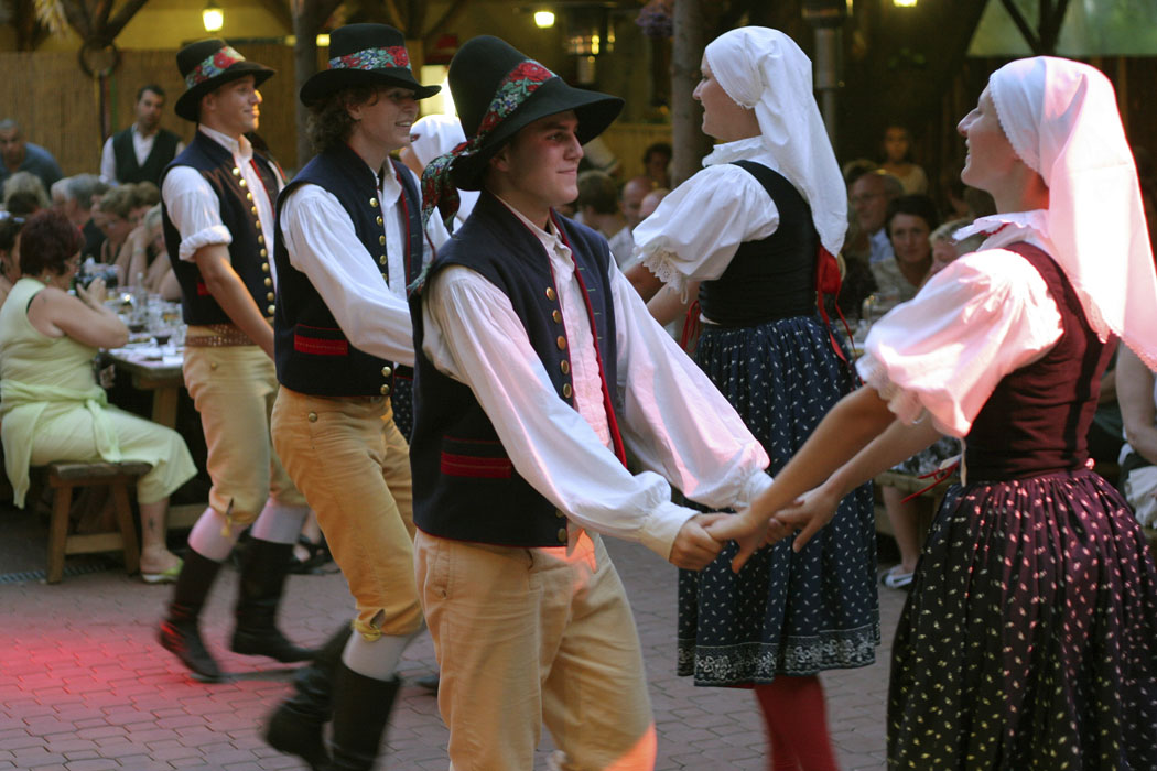 Нестандартно и весело провести праздник предлагает ресторан «Фольклорный сад», оформленный в традиционном чешском фермерском стиле. Под потолком подвешены сани в натуральную величину, по всему залу расставлены деревянные кадушки и развешаны связки сушеных овощей. Интерьер переносит посетителей в чешскую загородную усадьбу XIX века, поэтому отпразднованный в таком антураже Новый год запомнится надолго. Однако местные жители и гости Праги ценят «Фольклорный сад» вовсе не за его интерьер. Встреча Нового года в этом заведении понравится тем, кто интересуется историей, хочет побольше узнать о народных традициях, увидеть выступление фольклорного ансамбля, а может быть, даже принять в нем участие. Местные музыканты, выступающие в чешских народных костюмах и играющие на национальных инструментах, с удовольствием поощряют желание посетителей присоединиться к их игре. Вечер, чинно начинающийся приветственной стопкой медовухи – старочешского напитка, сваренного на меду по старинному рецепту, превращается в стихийное народное гулянье, в котором задействованы все: и принимающая сторона (музыканты, официанты и администратор), и приглашенные гости. Кстати, в новогодний вечер посетители могут переодеться в карнавальные костюмы. Фольклорная программа будет продолжаться с 20.00 до 22.30, а потом гостей ожидает веселая дискотека в стиле 70-90-х годов.