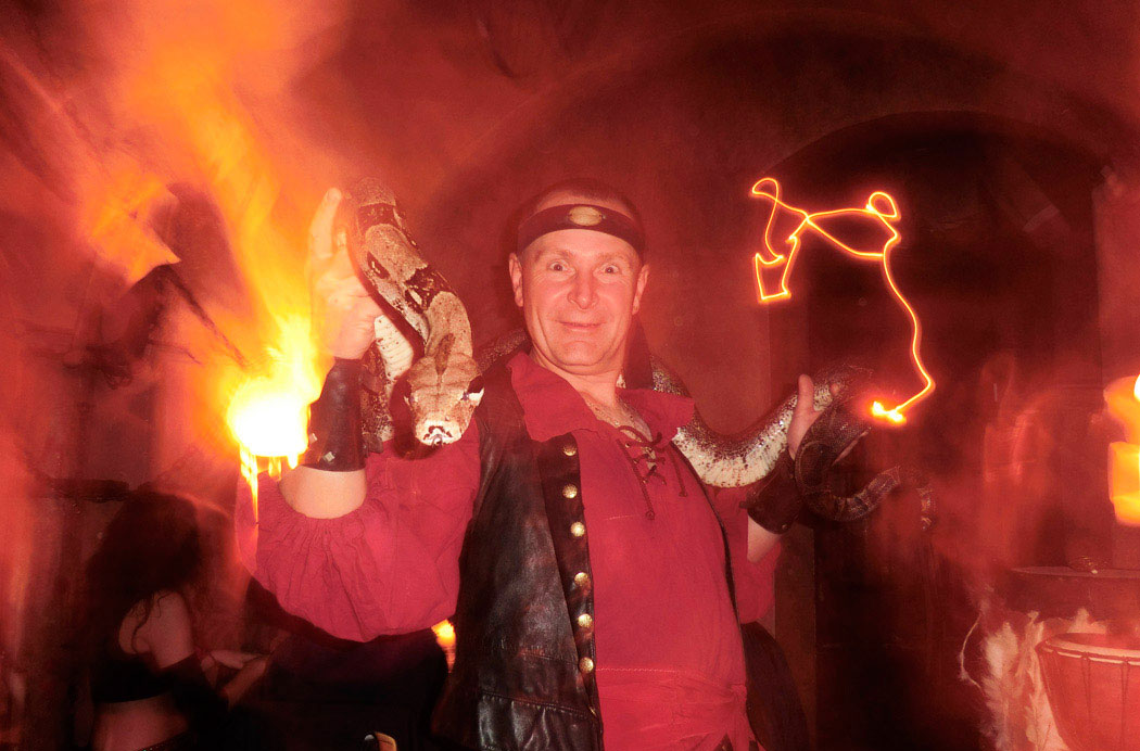 Под стать этому заведению и персонажи, которые устраивают для гостей новогоднее представление. Дух Средневековья не покинет гостей до конца вечера. Под живую музыку будут танцы на столах, предсказания гадалок – обязательно позитивные, выступления факиров со змеями, полуобнаженных танцовщиц и жонглеров. Карлики, великаны, бродячие артисты, разбойники будут развлекать публику. Кульминацией праздника станет великолепный фейерверк, который состоится прямо в саду, примыкающем к корчме.