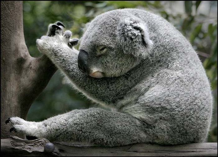 Итак, что мы имеем: совершенно безобидное существо, наверное, единственное на Земле никак не умеющее оборонятся. Когда ему больно коала ничего не делает, только плачет. Они не могут даже убежать от своего врага. Они, просто, привыкли жить в своей нише, абсолютно никого не боясь. Существо не от мира сего.