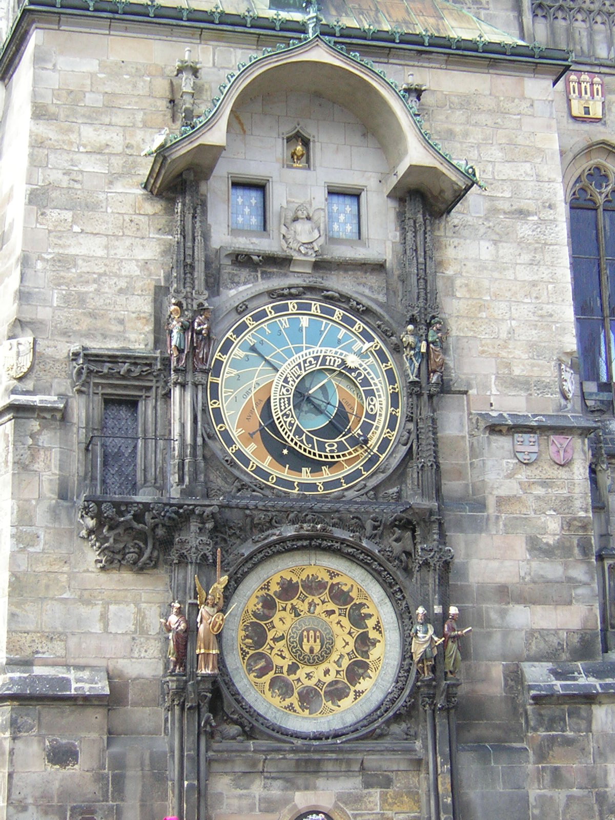 Старинные часы XV столетия власти города решили установить с одной целью – чтобы жители Праги, занятые торговлей прямо на площади, которая тогда служила одновременно и рынком, не опаздывали в церковь к началу мессы. А дизайн часов, по замыслу их создателей, заставляет каждого человека задуматься о своей душе, приближая его к Богу. Отбивая каждый час, за колокол часов дергает скелет, который символизирует Смерть, звенящий монетами Скупой и смотрящийся в зеркало гордец ассоциируются с людскими пороками. После их появления начинается шествие двенадцати апостолов, напоминающих об истинной вере как способе праведной жизни.