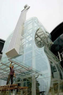 Этот "музыкальный" дом находится в Китайском городе Хуайнань. Огромная скрипка служит входом в здание и в ней находится эскалатор для подъема в "рояль". Выполнено строение из прозрачного и черного стекла. Здание было построено, в первую очередь, как достопримечательность, чтобы выделить город из множества других неприметных китайских городов. В самом же здании находится выставочный комплекс, в котором демонстрируются планы улиц и районов города.Дом-корзина (The Basket Building). Штат Огайо, США.