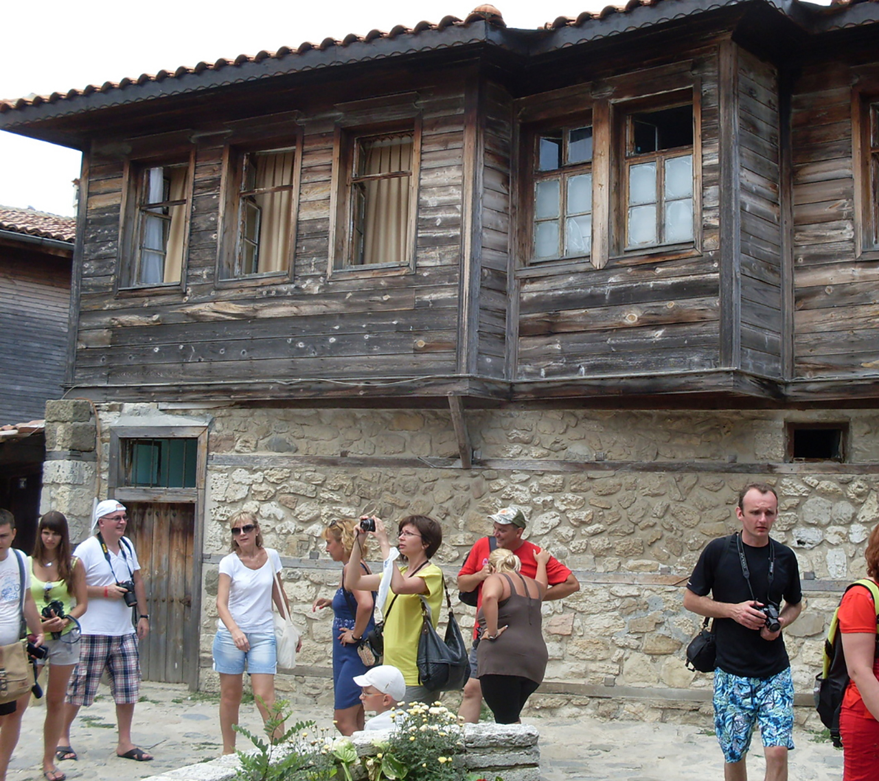Самобытный и словно застывший в прошлом Несебр можно по праву назвать воплощением самой Болгарии. В нем найдется все то, с чем ассоциируется Болгария у приезжих и у местных жителей. Например, дома, построенные из камня и дерева, в которых второй этаж нависает над первым и поддерживается деревянными балками, почерневшими от времени. На некоторых улочках, мощенных по старинке камнем, из-за такой конструкции домов почти не видно неба. Тем не менее, эти постройки не кажутся массивными. Они сохранились с XVIII века и до сих пор остаются жилыми. При каждом таком домике можно найти уютный двор, где так приятно посидеть в тени за ужином.