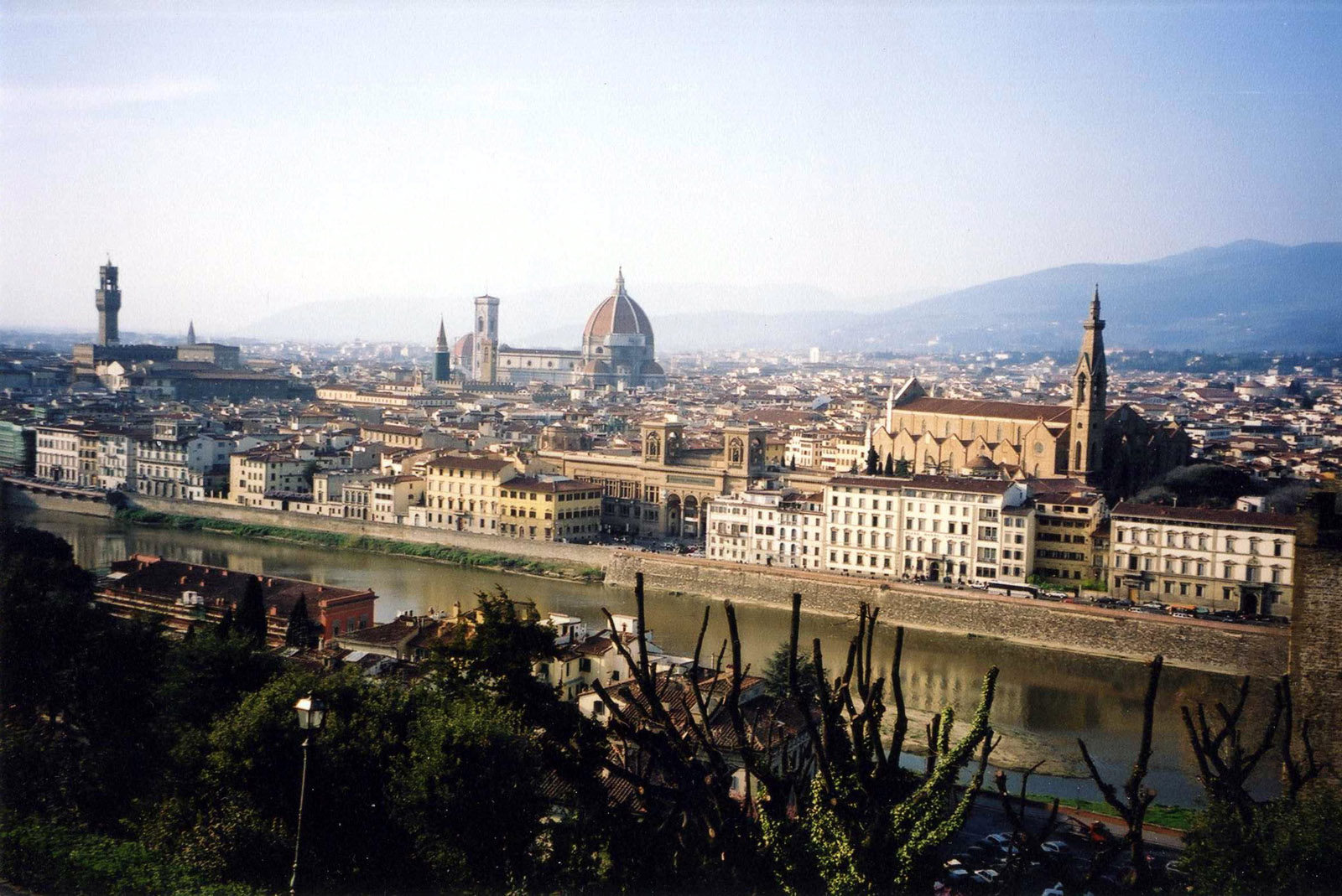 11. Площадь Микеланджело. Лучший вид на город через реку Арно. «Флоренция с тонкими кампаниллами – голубоватые вуали воздуха, голубовато-фиолетовые горы, Арно серебряное, светлый туман, да с гор благоухание фиалок. Вольный ветер, музыка и благовоние. Светлый свет Тосканы» (прозаик, мемуарист Борис Зайцев).