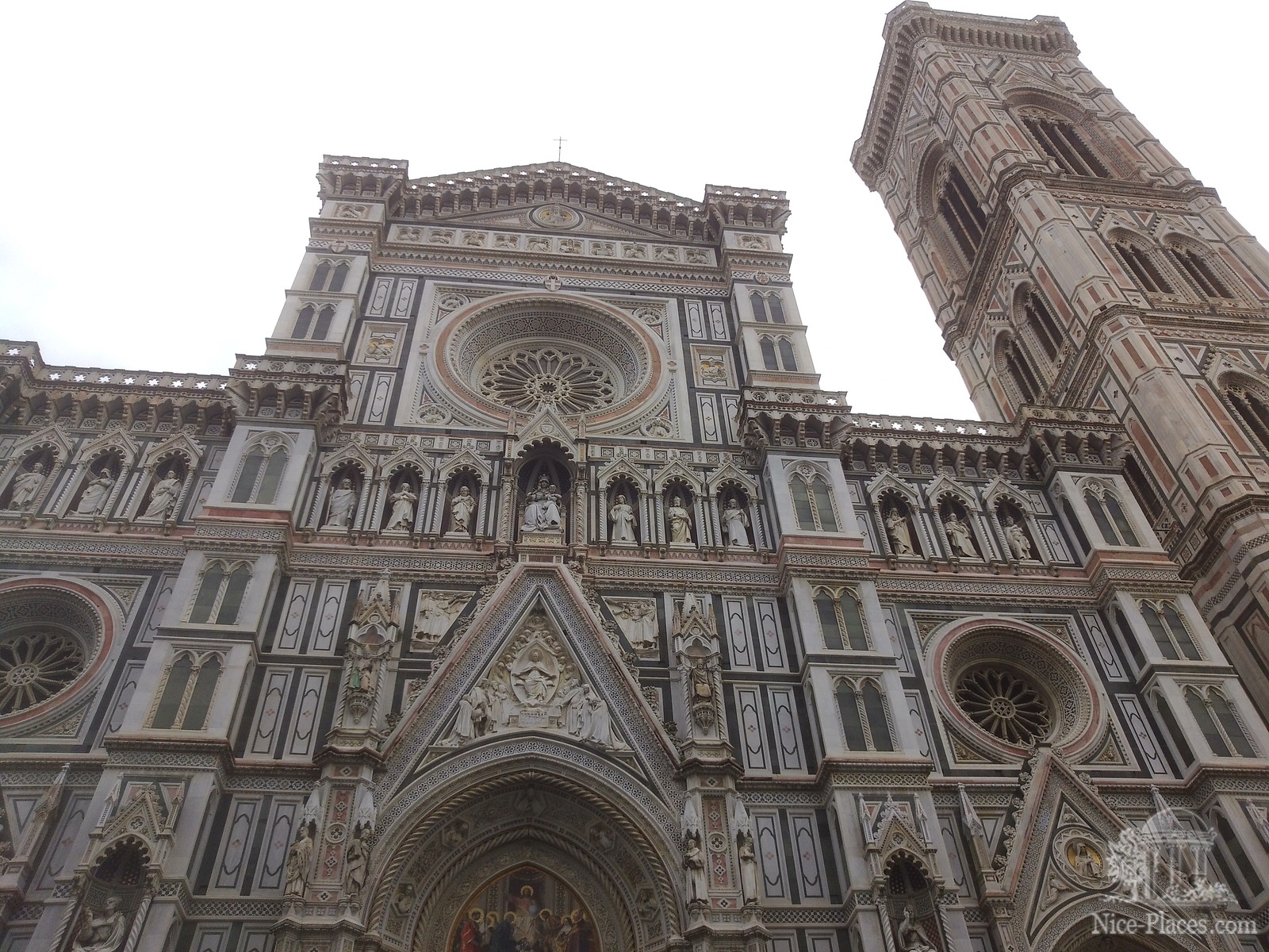 Санта Мария-дель-Фьори является третьим по величине собором в мире, его нельзя окинуть одним взглядом. Колоссальный собор и стоящий рядом баптисерий с колокольней занимают площадь длиной в 258 м. Собор Санта Мария-дель-Фьори построен архитектором Арнольфо ди Камбио в XIV веке. Он поражает гармоничными формами и облицовкой из зеленого, розового и белого мрамора. Мощный купол этого собора, построенный в XVI веке архитектором Брунеллески, кажется невесомым. Он возвышается над всей Флоренцией, являясь главной архитектурной доминантой города.