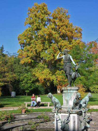 Из просторного фонтанного двора, посреди которого с 1812 года красуется оригинальный фонтан с классической статуей Уллиса, прилегает известная галерея, построенная при правлении Франциска I, которую смело можно назвать предвестницей художественных галерей в королевских дворцах Версаль и Лувр. Пройдя всего несколько десятков метров от Фонтанного двора, можно выйти в живописный сад Дианы, где посреди великолепного цветника возвышается статуя Дианы – богини охоты, напоминающей об основном предназначении замка в Фонтебло.