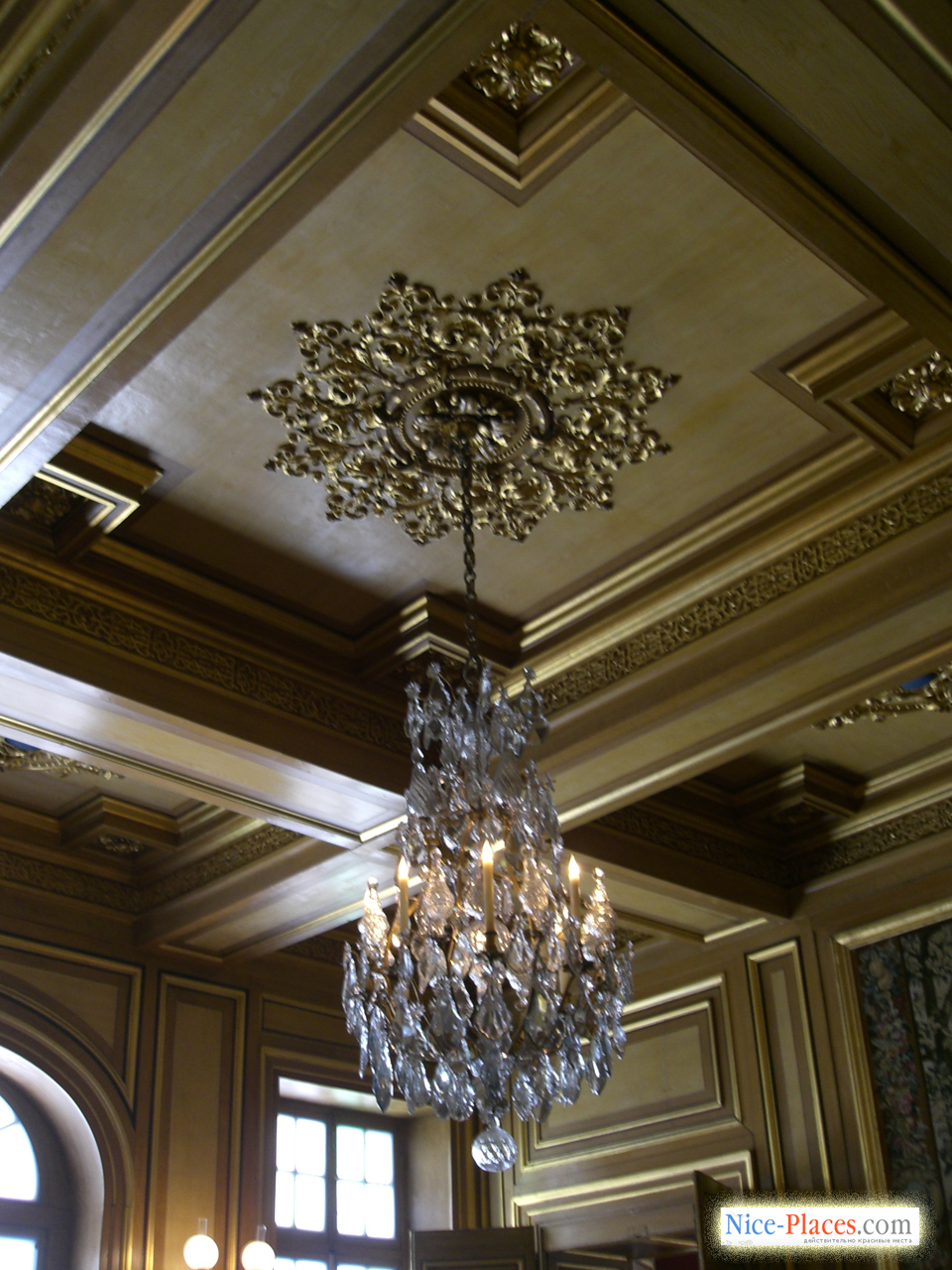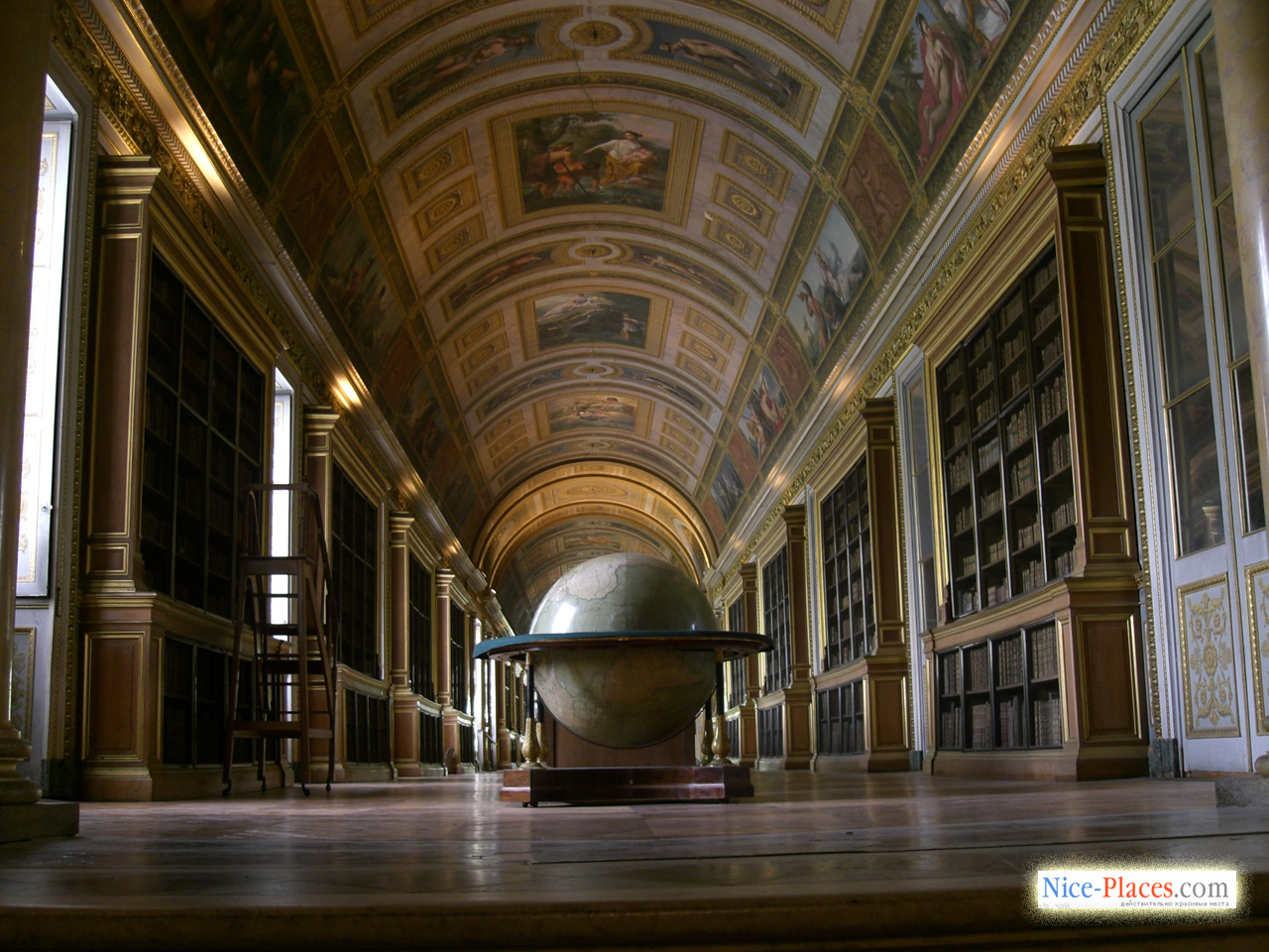 …В роскошной галерее, созданной королем Генрихом II, восемь тематических композиций настенных и потолочных фресок посвящены богине охоты Диане. На одни она изображена купающейся, на других — отдыхающей, на третьих представлена в качестве королевы ночи, на четвертых — в виде богини сумрака Гекаты. В оригинальном декоре бального зала явственно различаются стрелы и полумесяц – родовой символ молодой Дианы де Пуатье, столь ненавидимой Екатериной Медичи фаворитки короля Генриха II.
