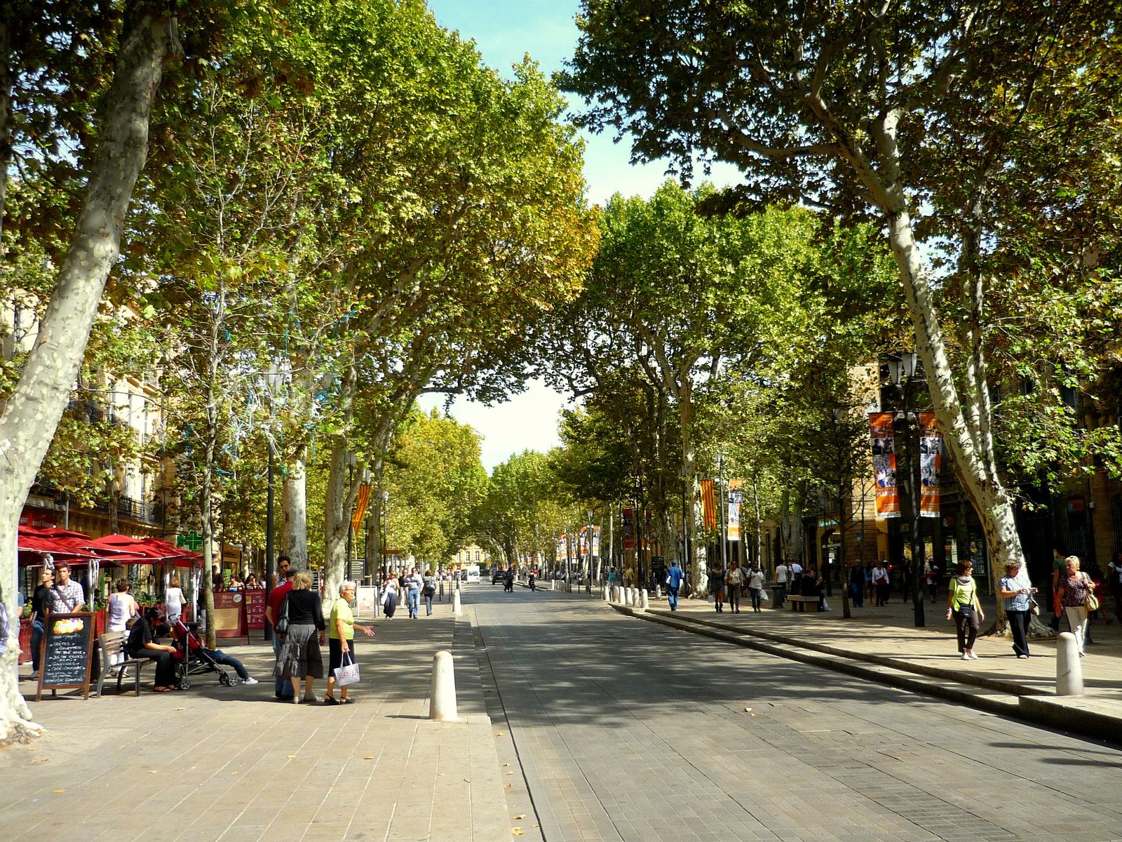 Исторический центр Экс-ан-Прованс буквально окружен плотным кольцом из тенистых бульваров, на которых находится огромное количество уютных ресторанчиков, кафе и магазинов. Сами горожане признаются, что в Экс-ан-Провансе находятся наиболее богатые рынки региона, предлагающие гостям свои фирменные сувениры: анисовый ликёр «пастис», масло лаванды и чудесно пахнущее мыло.
