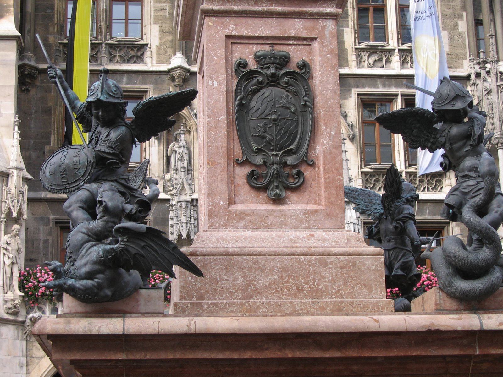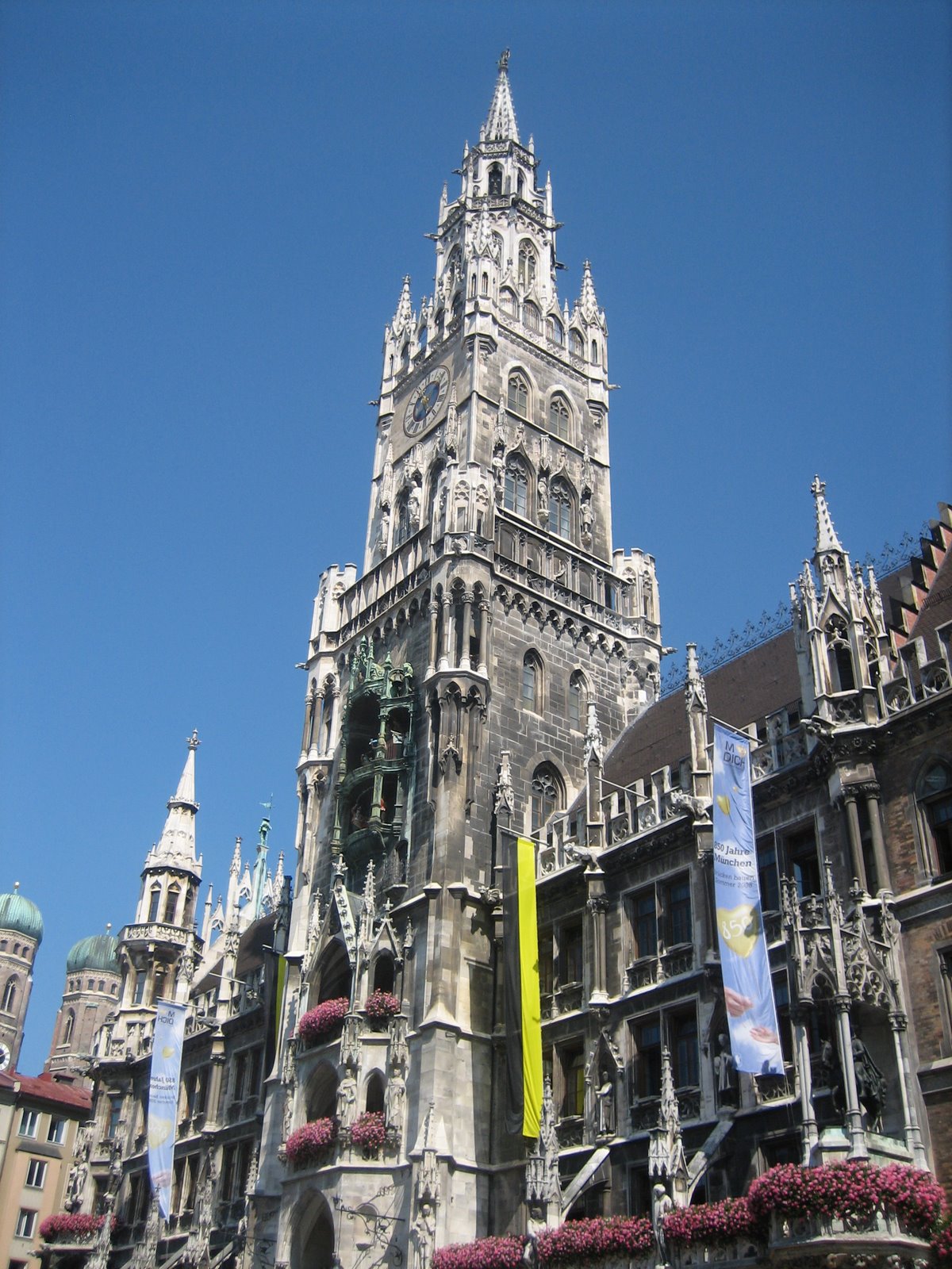 Сердцем старого города считается площадь Мариенплатц, заложенная еще в 1158 году, во время правления Генриха Льва. Во времена средневековья здесь проходили рыцарские турниры, ярмарки, крестьянские и зерновые базары. Сейчас в центре площади возвышается колонна Марии, воздвигнутая в честь покровительницы Баварии в 1638 году Гумбертом Герхардом, ее украшают четыре уникальные фигурки, ассоциирующиеся с войной и голодом, чумой и ересью – главными проблемами, охватывавшими главный баварский город в ту далекую эпоху. Здесь расположено одно из самых изысканных зданий, построенных в неоготическом стиле – Новая ратуша, строительство которой велось в 1867-1909 годах. Ее фасад украшен многочисленными аркадами, сбоку примыкает маленькая резная башенка, а изысканность зданию придает величественная часовая башня, украшенная 32 медными фигурками, вращающимися по время боя мюнхенских курантов. Ее механические часы снабжены 43 колоколами, звон которых можно услышать ежедневно в одиннадцать часов утра.