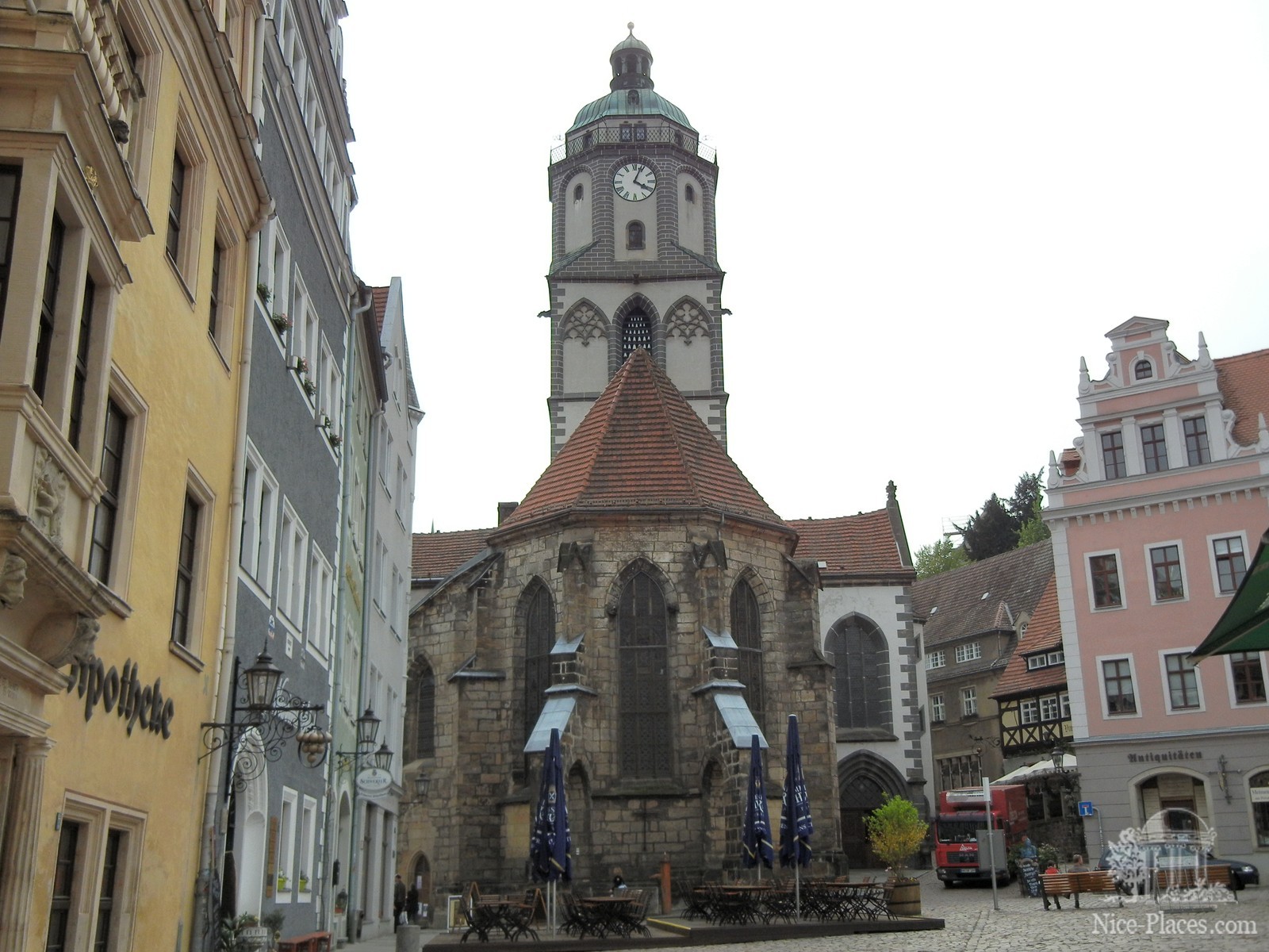 А пока что вернемся к Рыночной площади и церкви Богоматери (Фрауенкирхе). Возведена она была в начале XIV века, в 1549 г. перестраивалась после пожара, почти полностью уничтожевшего церковь. Фарфоровые колокольчики были установлены на ее колокольне в 1929 году в честь 1000-летия Майсена. К слову сказать, это первый в мире случай, когда на звоннице церкви вывешивают фарфоровые колокола. 37 колокольчиков играют приятную неповторимую мелодию в 6:30, 8:30, 11:30, 14:30, 17:30, 20:30 часов по местному времени, так что не пропустите.