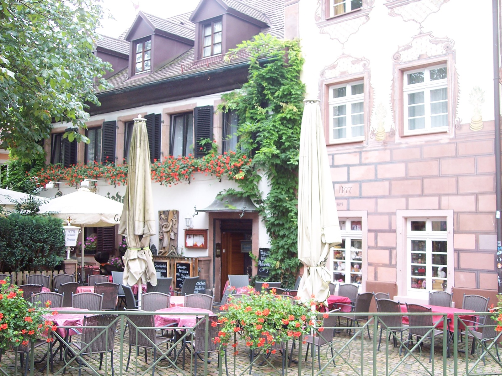 Спустившись с горы, зашли в небольшую кафешку знакомиться с изысканной баденской кухней. Если без вишневого торта и соблазнительных баденских вин, то за 15 евро можно познакомиться. И прийти к выводу, что на меню очень влияет география. Помимо блюд немецких, много французских и швейцарских.