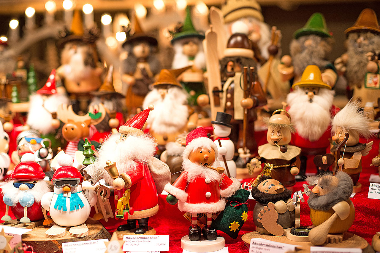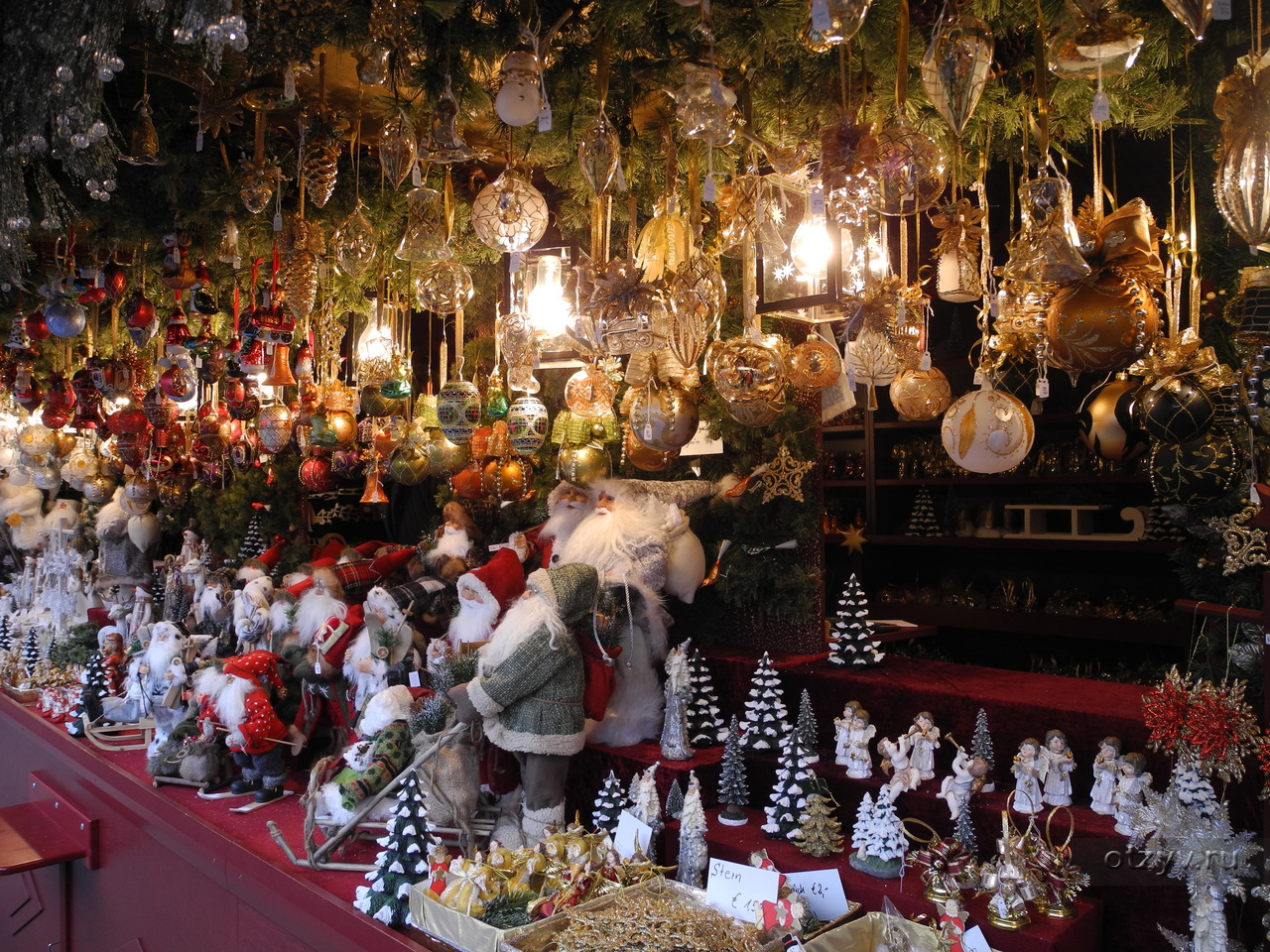 В центре приближающегося праздника – знаменитые рождественские базары («вайнахтсмаркты») с прекрасными рождественскими композициями и любимыми детьми и взрослыми персонажами немецких сказок. Это пиршество красоты, веселья, разнообразия, благодушия, общения. В многочисленных симпатичных пряничных домиках с еловыми ветвями можно приобрести всевозможную рождественскую атрибутику, различные сувениры: елочные игрушки, фахверковые домики, колокольчики, свечи и подсвечники, светильники, хрустальные и стеклянные фигурки, нарядные куклы, кружева, янтарь, бижутерию, поделки местных умельцев разных форм и стилей.