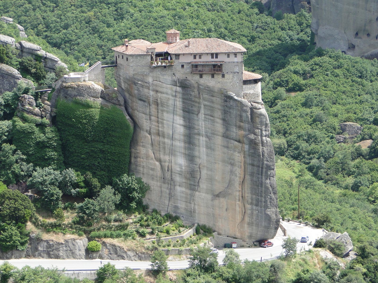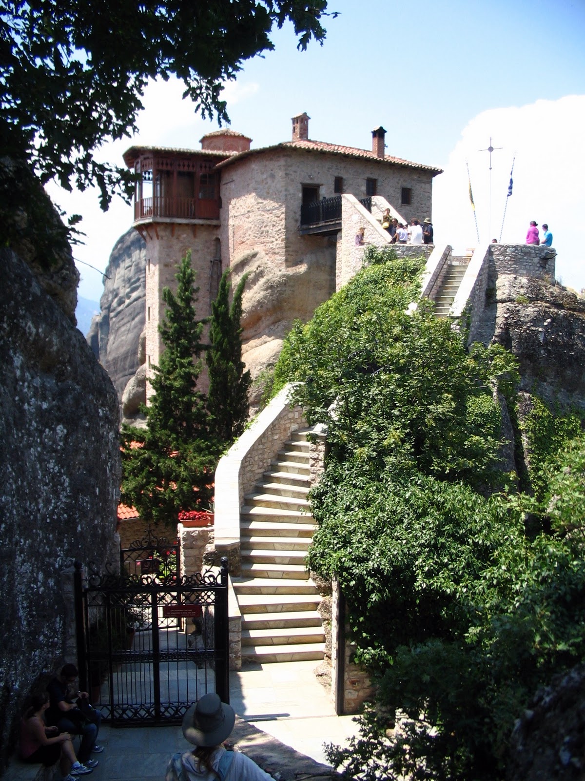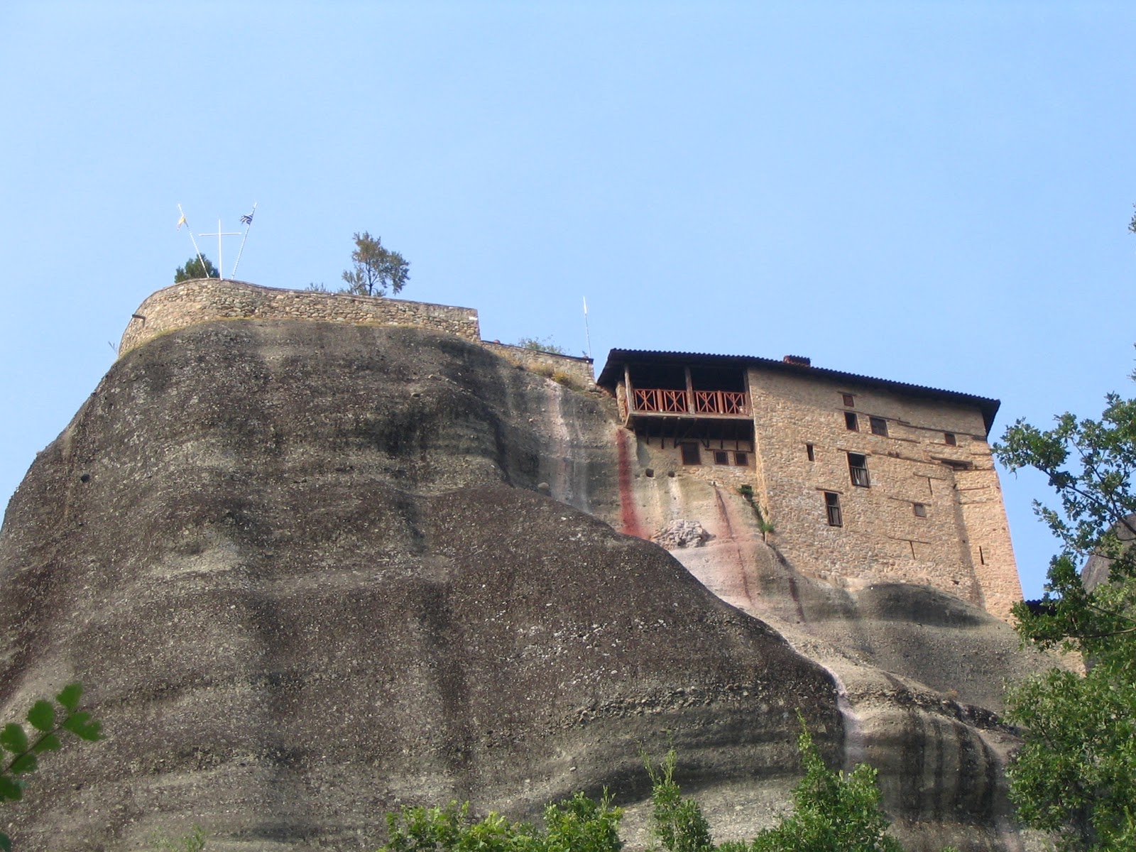 Самым главным по здешней иерархии, да и по своему высокому расположению, является монастырь Великая Метеора, воздвигнутый святым Афанасием еще около 1340 года. Он расположен настолько высоко и неприступно, что вплоть до начала ХХ века для поднятия вещей и провизии в монастырь использовались плетеные сети. Монахи же взбирались наверх при помощи веревочных лестниц, и только в 1922 году в скале было вырублено 115 чрезвычайно крутых ступеней.