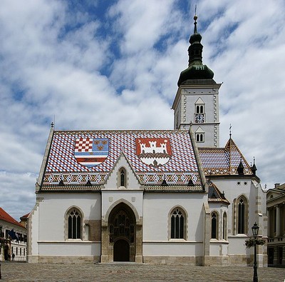 Церковь Святого Марка была построена в 1242 году, но за свою долгую историю она не раз перестраивалась, в настоящее время в ее архитектурном стиле можно заметить и романские, и готические черты. Изюминкой храма можно назвать его уникальную крышу, украшенную орнаментом из цветной черепицы, на которой мозаичным способом выложены гербы Далмации, Хорватии, Савонии и самого Загреба. Но эта крыша является поздним вкраплением в храмовую архитектуру – она была добавлена лишь в начале XIX столетия. Интерьер Церкви Святого Марка украшают скульптурные изображения Иисуса Христа и двенадцати апостолов и настенные фрески, выполненные хорватским художником Йоже Кляковичем.
