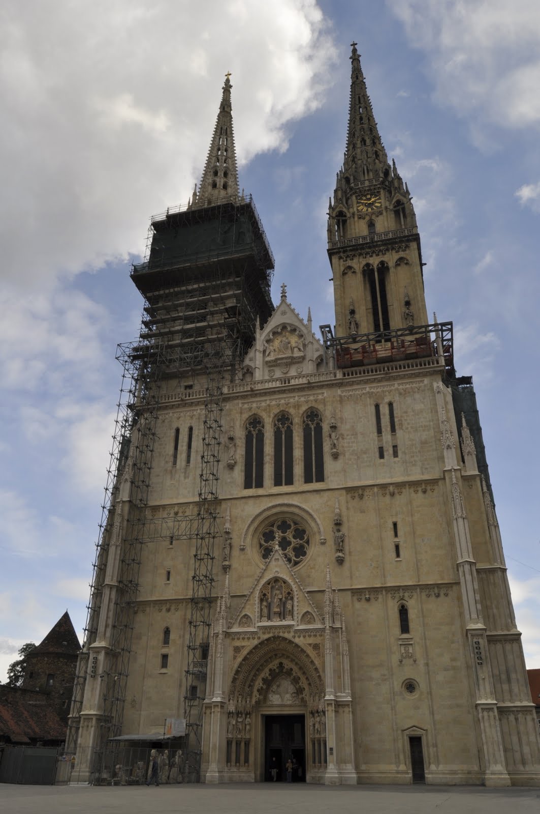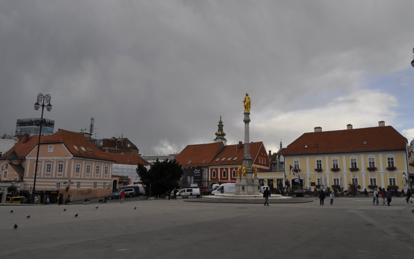 Площадь Каптол была основана еще во времена средневековья, а по ее периметру расположены дома XVI века постройки. Кафедральный собор Вознесения Девы Марии в былые времена назывался Собором святого Стефана, он был заложен еще в 1093 году, но первоначальный храм был уничтожен в XIII столетии во время набегов татар, после чего началось возведение собора заново. В 1880 году колокольня и башня были разрушены мощным землетрясением, а их реставрация проводилась на рубеже XIX – XX столетий. Внутри собора, построенного в неоготическом стиле, находится усыпальница, где захоронен кардинал Алоизие Степинац. В 1878 году перед входом в собор был установлен оригинальный фонтан, изображающую Деву Марию в окружении четырех апостолов.