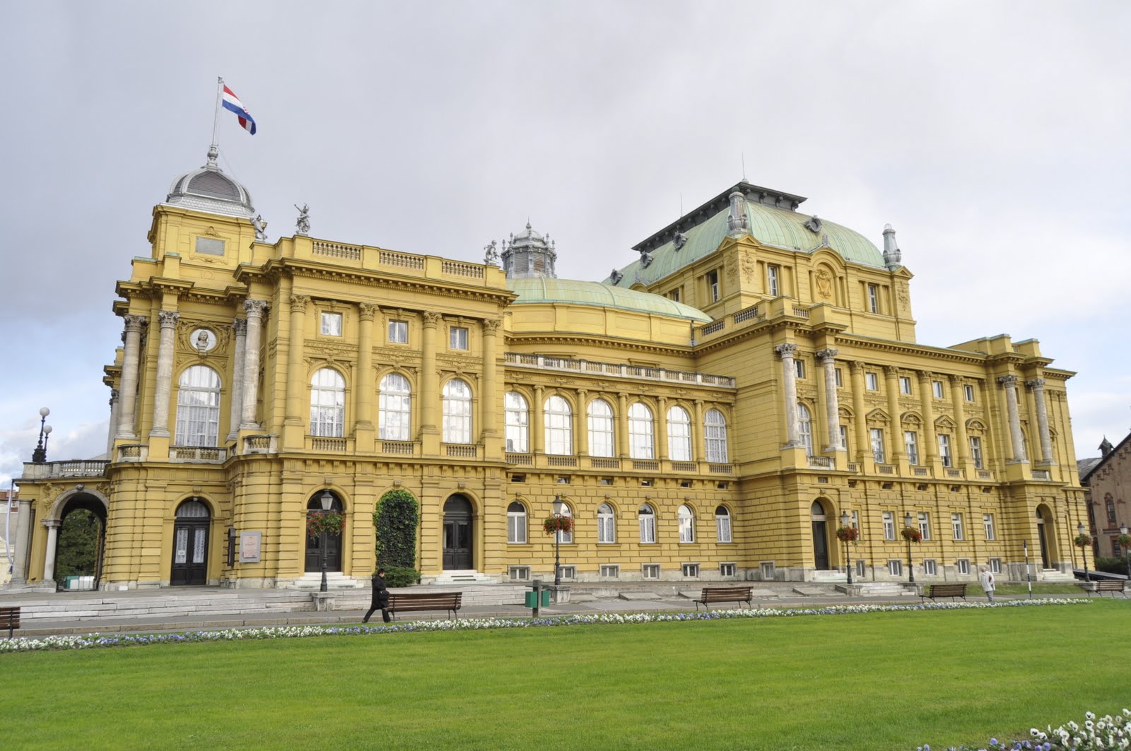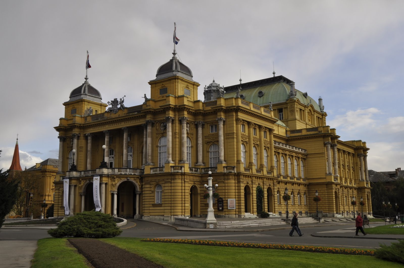 Хорватский Национальный Театр на площади Маршала Тито был основан в 1895 году, его строительство осуществлялось по инициативе императора Франца Иосифа I. Архитектурный ансамбль театра довольно необычный – прямоугольное здание венчает не один, а три купола – два маленьких купола с фасада и крупный купол с тыльной стороны, в нем сочетаются черты двух стилей – рококо и необарокко. Интерьер театра богато украшен картинами, среди которых находится и «Родник жизни» — известный шедевр, написанный художником Иваном Мештровичем. В Национальном театре можно не только увидеть балет или послушать оперу, но и посмотреть драматические спектакли. Рядом с театром находится здание Загребского университета, построенное в 1856 году.
