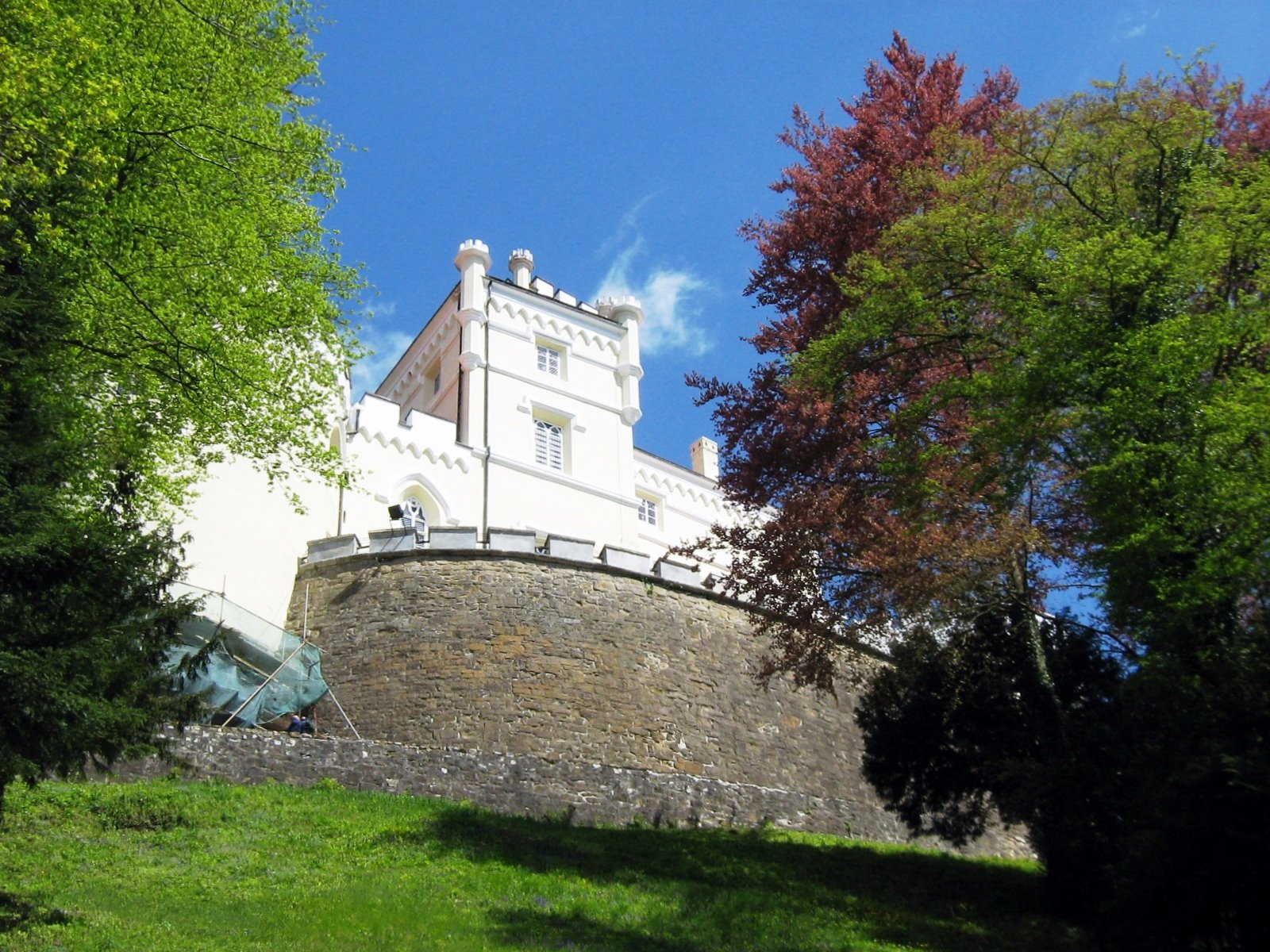 В этом регионе находится еще один крупнейший, отлично сохранившийся замок Хорватии, наиболее популярный среди туристов – Тракошчан, возвышающийся над берегом живописного озера Вараждина. Мощное укрепление здесь было основано еще во времена средневековья, первое упоминание о замке датируется 1334 годом. Целью строительства мощного замка, являющегося шедевром европейского фортификационного искусства, было доминирование и контроль передвижения по местным дорогам, среди которых наиболее важным был путь из города Птуй в Беднянскую долину. Сначала средневековым замком владел граф Цельский, а в XVI столетии маленький уютный замок становится собственностью аристократов из древнего рода Драшковичей. От средневековых укреплений остались лишь мощные стены, а архитектурный ансамбль замка Тракошчан был полностью изменен в середине XIX столетия – вместо строгого средневекового строения был возведен прекрасный дворец в неоготическом стиле, он соответствовал духу нового времени, романтизму, возвращению лучших традиций.