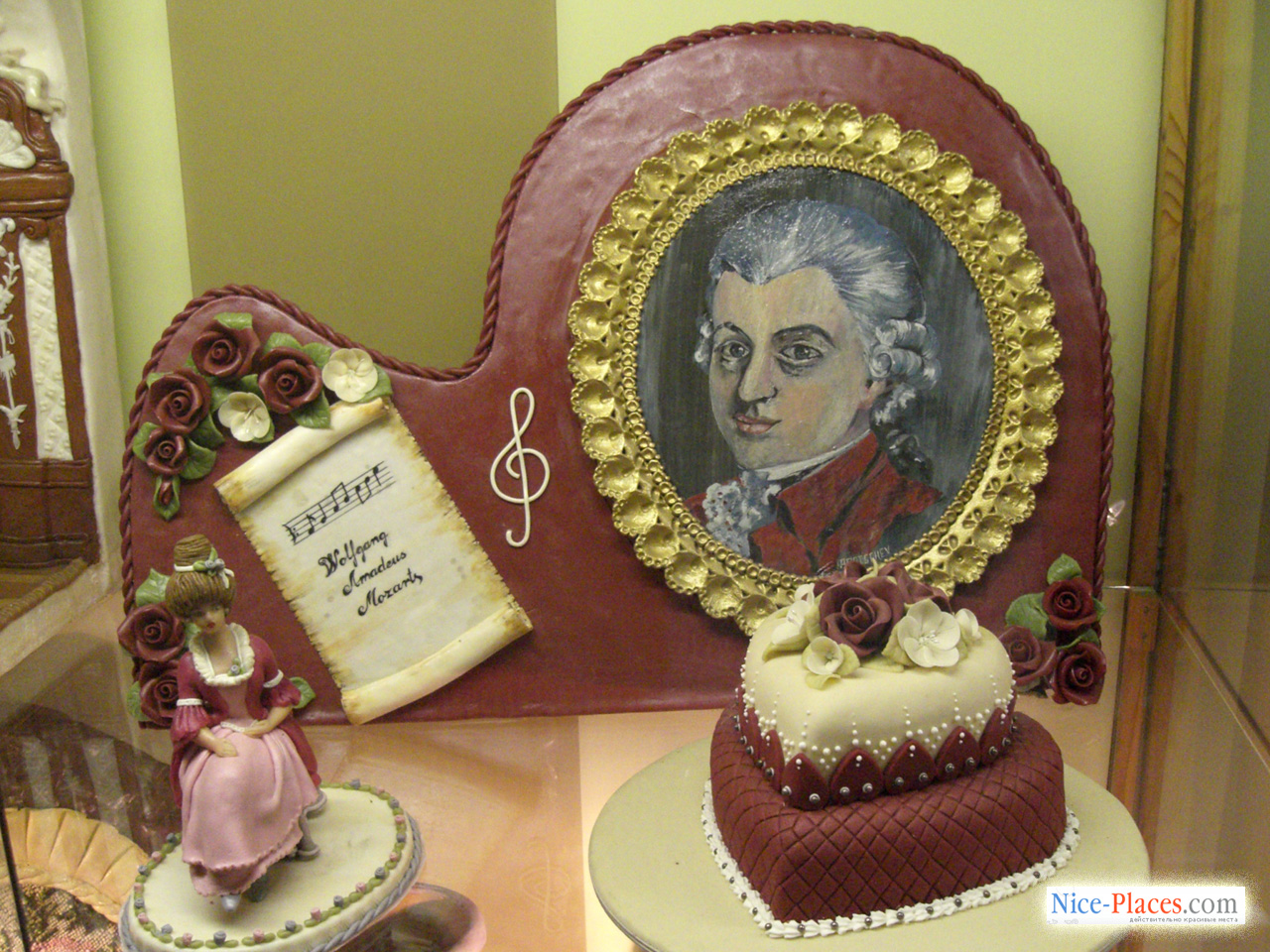Музей расположен на втором этаже старинного двухэтажного здания, прямо над уютной кондитерской, где можно приобрести всевозможные сладости, включающие марципаны. Поднявшись по лестнице, туристы могут увидеть главный экспонат необычного музея – громадный свадебный торт, выполненный из марципанов, он вызывает большой интерес не только у невест, радостно ожидающих собственную свадьбу, но и у остальных посетителей музея. В музее можно увидеть и необычное здание Венгерского парламента, которое запросто можно съесть, ведь оно изготовлено из лучшего шоколада, и столовый сервис, изготовленный из простого, всем знакомого сахара. Но наибольший интерес вызывает карта Венгрии, приготовленная из марципановой массы, а для ее создания мастеру пришлось постараться на славу. Карта необычная, на ней запечатлен распад Австро-Венгерской монархии, и новые страны, возникшие после Первой Мировой войны. И словно с укором на эту карту смотрит Мария Терезия со своими многочисленными детьми, императрица из династии Габсбургов, портрет которой выполнен тоже из марципана. Сам портрет имеет особенную ценность, так как картин таких размеров, созданных из марципана, нет больше ни в одной стране мира.Один из залов Музея Марципана в Сентэндре посвящен Австрии, связанной с Венгрией определенным этапом общей истории. Здесь расположена необычная витрина с марципановым портретом великого Моцарта, а рядом лежит старинная скрипка известного композитора. Привлекают внимание и тончайшие венские кружева, и герб Австрии, представленный как оригинальная вышивка на покрытии стула, и скатерть, покрывающая небольшой, словно игрушечный столик, с необычным узором из цветов. Но все это – обман зрения, и вышивка, и узоры на скатерти, и кружева тоже выполнены из марципана, а рассматривая такие экспонаты, поражаешься, насколько тонкой может быть работа кондитера. Пройдя чуть дальше, можно увидеть еще одну витрину, на которой представлены испанские кони, весь зал наполнен многочисленными витринами, экспонаты которых, выполненные в виде знакомых с детства героев сказок, возвращают посетителей Музея Марципана в яркий и незабываемый мир детства.